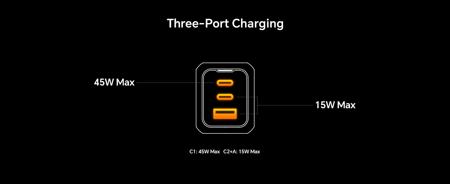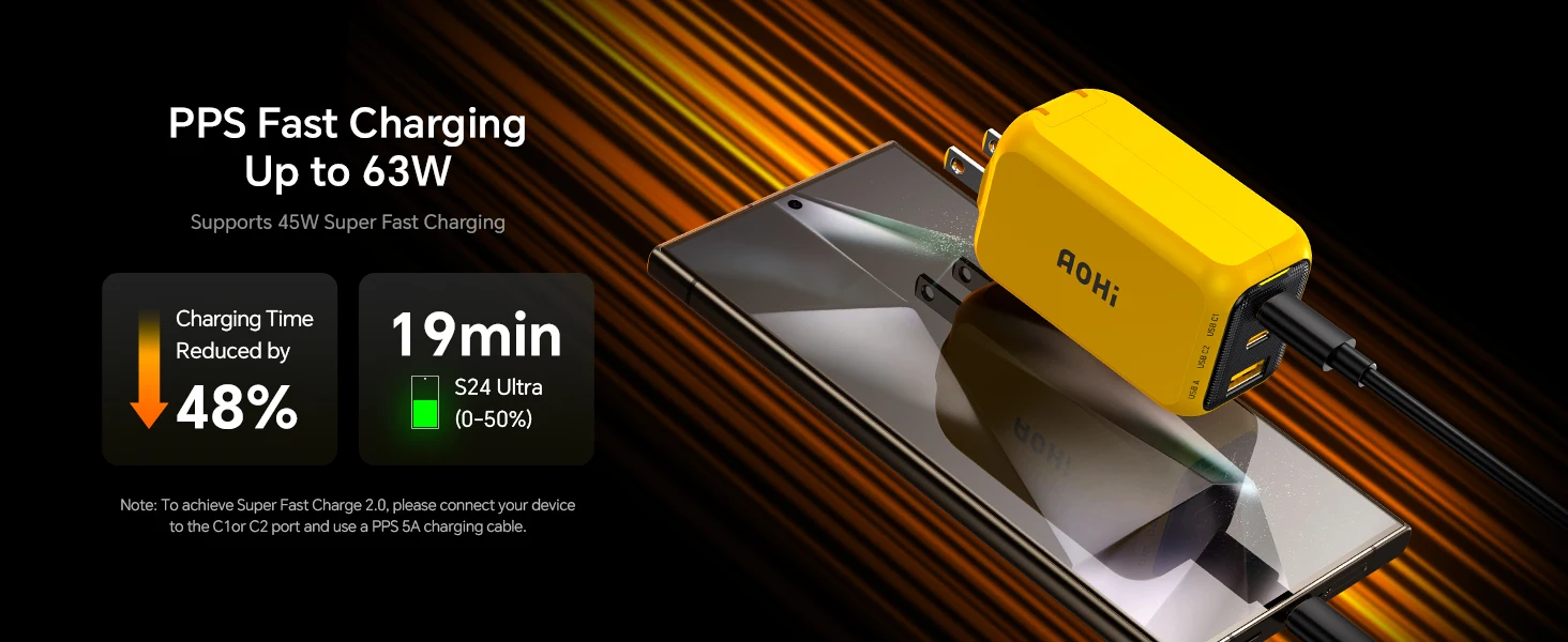 19 Mins to 50%: Achieve Samsung Super Fast Charging 2.0 with PPS protocol—charge the Galaxy S24 Ultra from 0% to 50% in just 19 minutes up to 45W output. With 2 USB-C and 1 USB-A ports, flash charge a laptop, phone, and tablet simultaneously with stable power output.