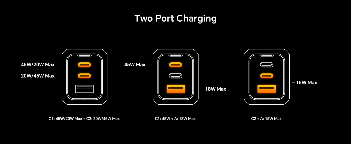 True 65W Dual USB-C Output | Dynamic Power Allocation: