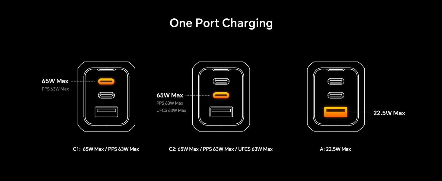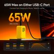 Both USB-C ports support 65W max output individually—with no power drop when charging through either port. Enjoy uninterrupted charging even when plugging/unplugging other devices, thanks to dynamic power distribution and dual-port blind-insertion support.