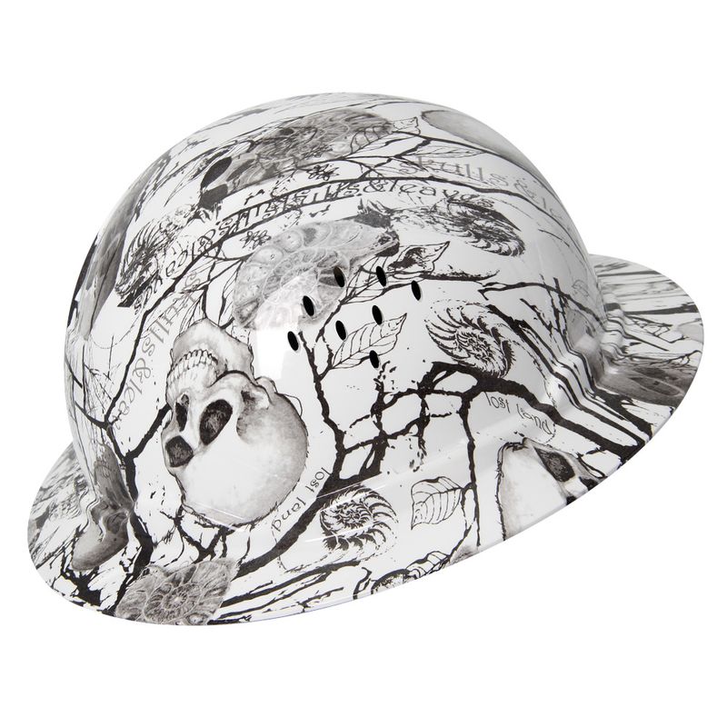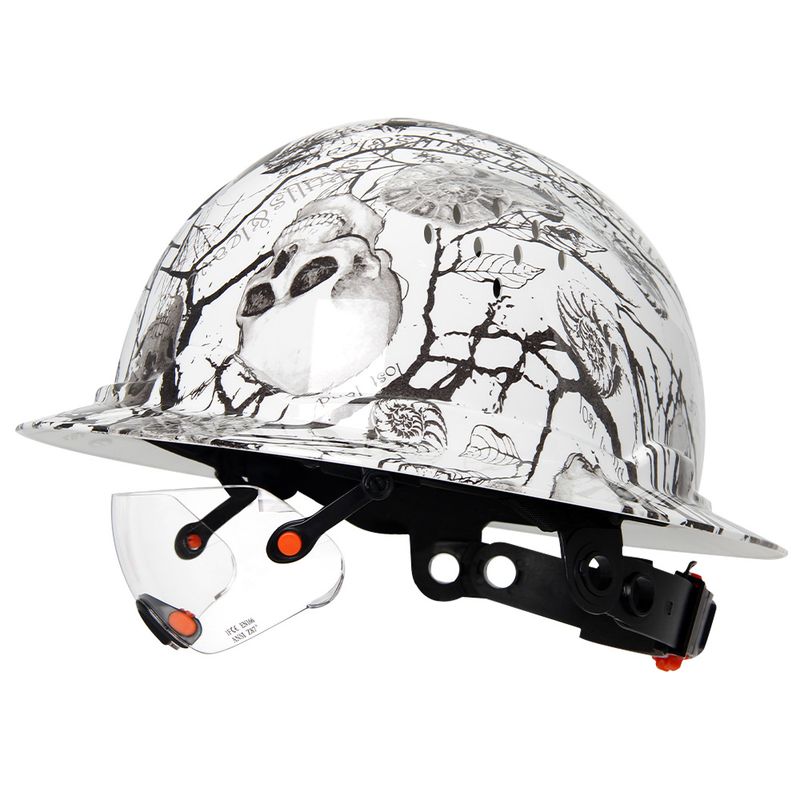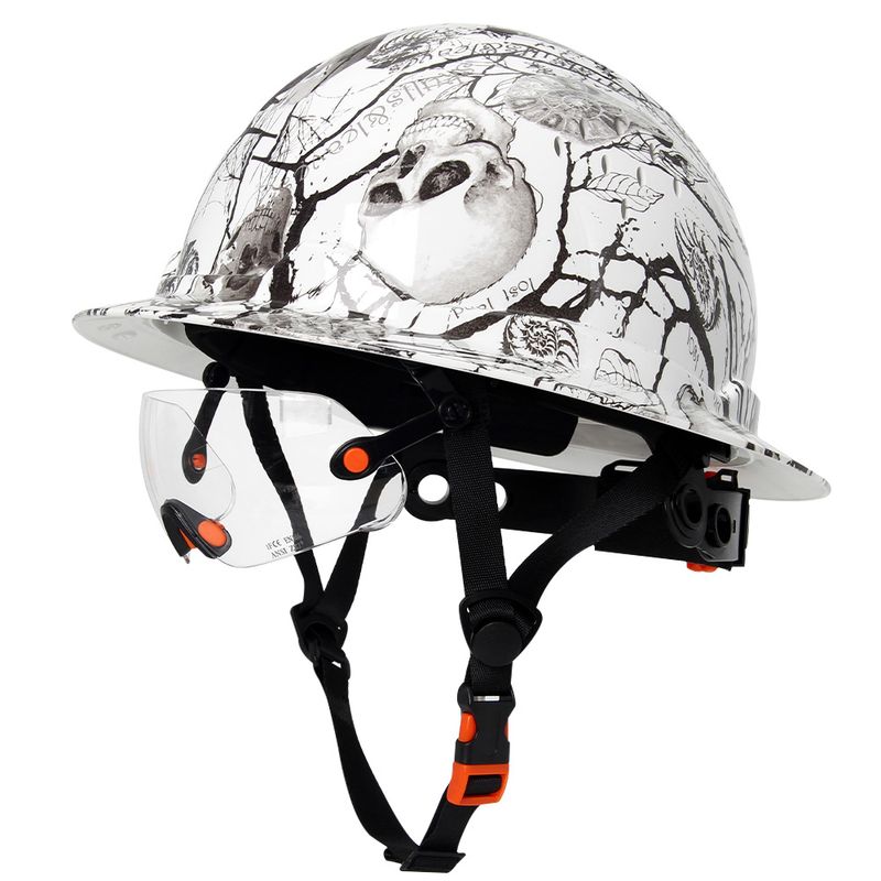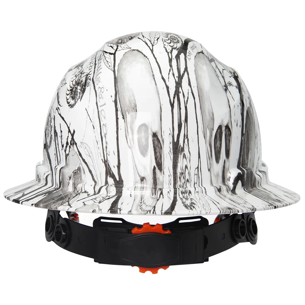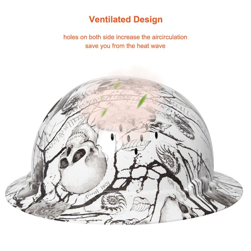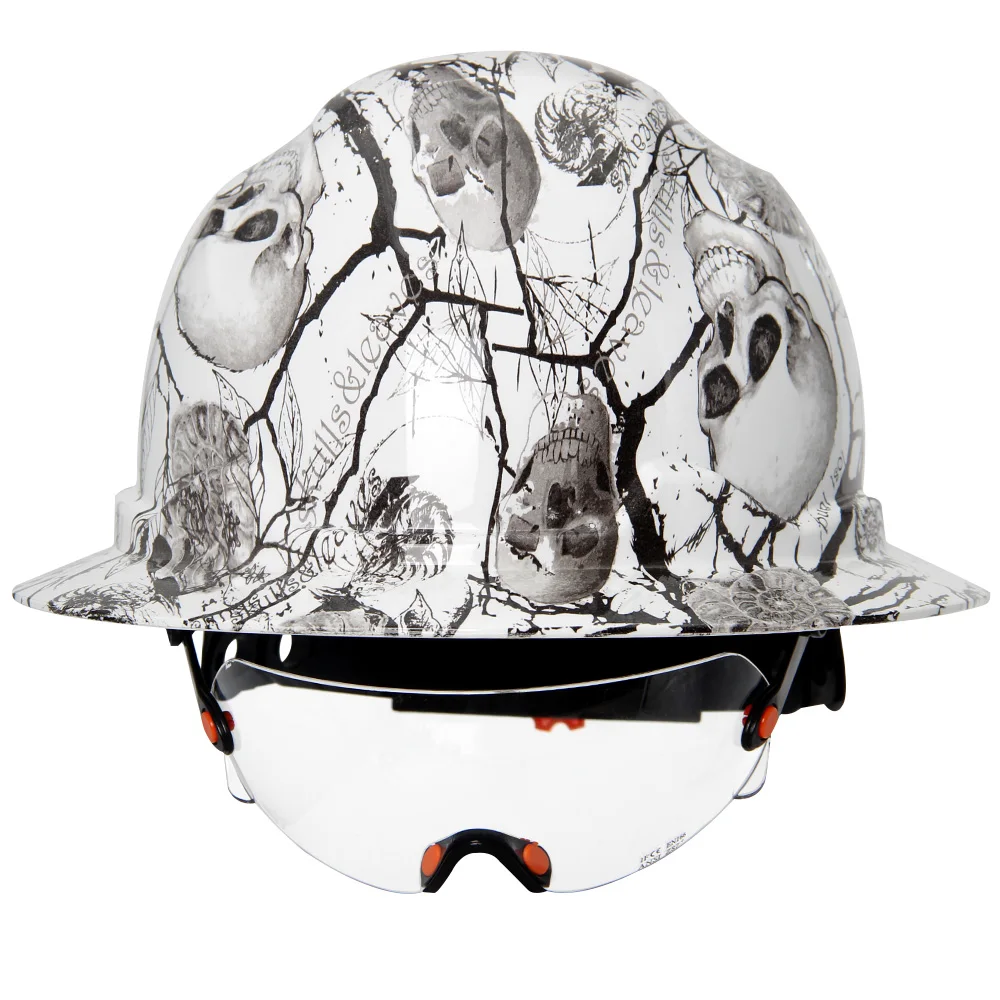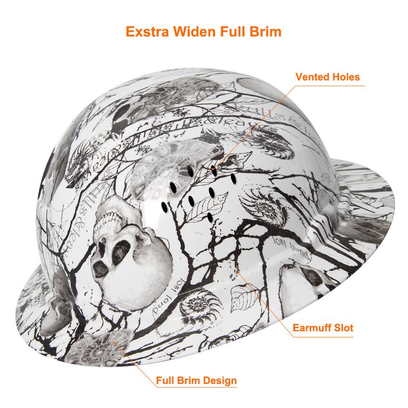 Aolamegs Skull Pattern Full Brim Hard Hat For Engineer Construction Safety Helmet HDPE HardHat Lining 6 Point Breathable ANSI