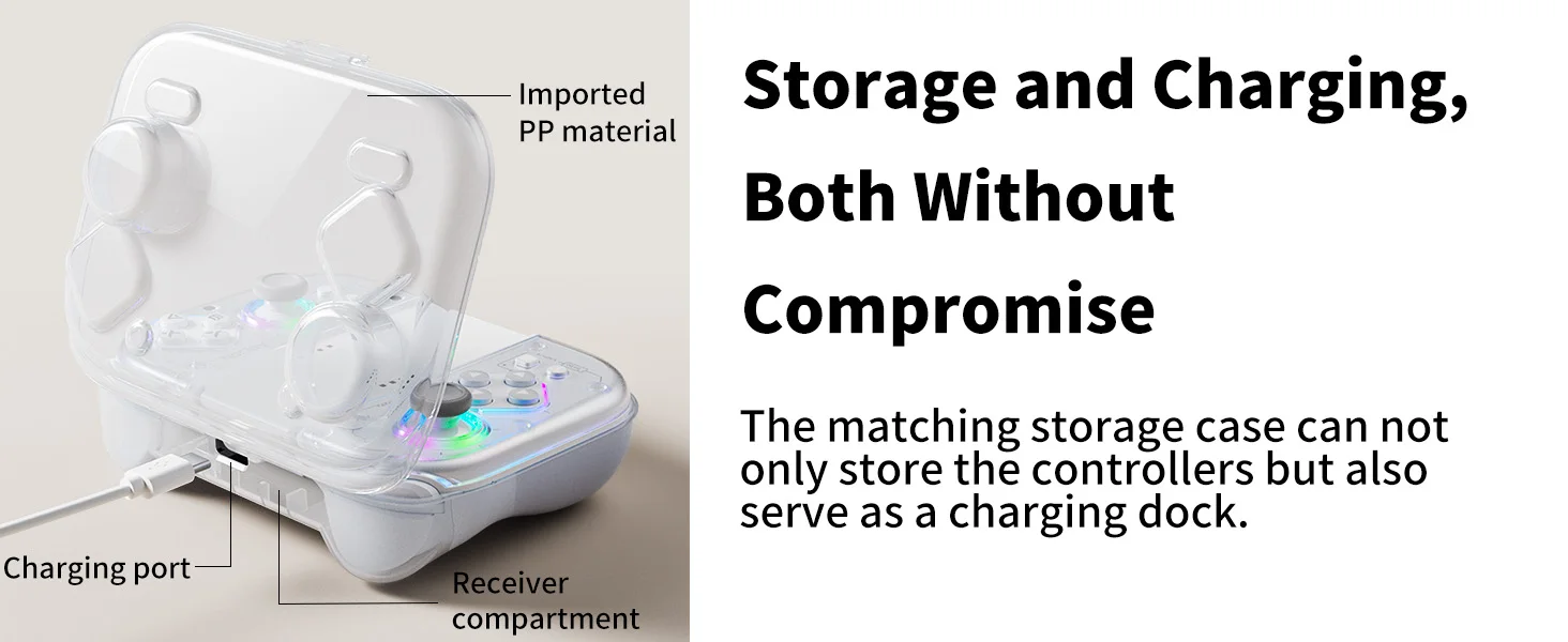 The modern design of the handle is transparent and directly compatible for NS/ pc Supports IOS and Android systems