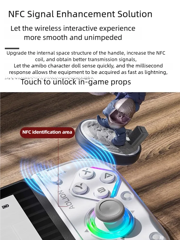 Note: Supports switch 1 and 2, but on switch 2, it can only be connected via Bluetooth and cannot be magnetically attracted to both sides of the host. Only the J20 Pro has NFC functionality and is located near the Aolion location