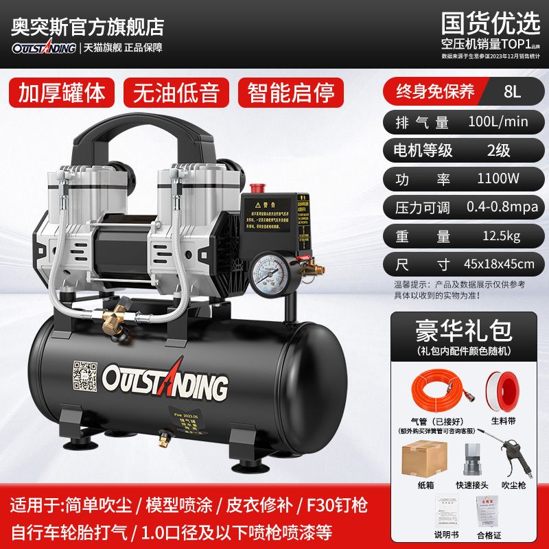 Aotus Air Compressor Small Portable Mini 220V Spray Pen Adapted to Woodworking Special Compression Nail Gun Air Pump