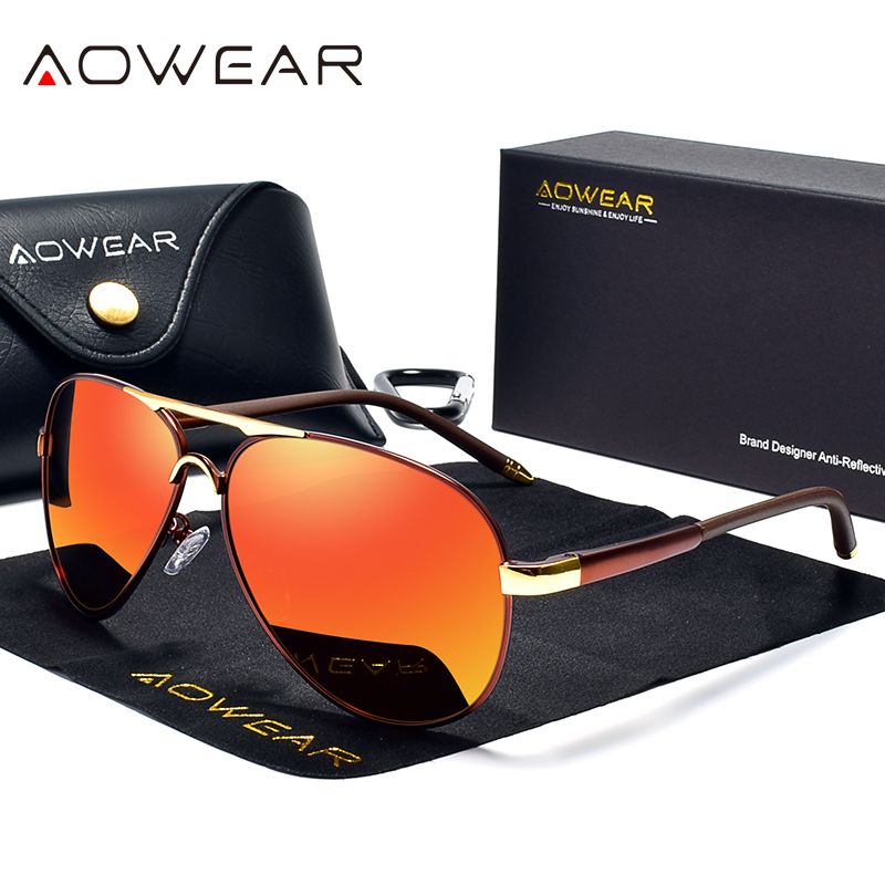 AOWEAR Men's Aviation Sunglasses Men Polarized Mirror Sunglass for Man HD Driving Pilot Sun Glasses lunettes de soleil homme