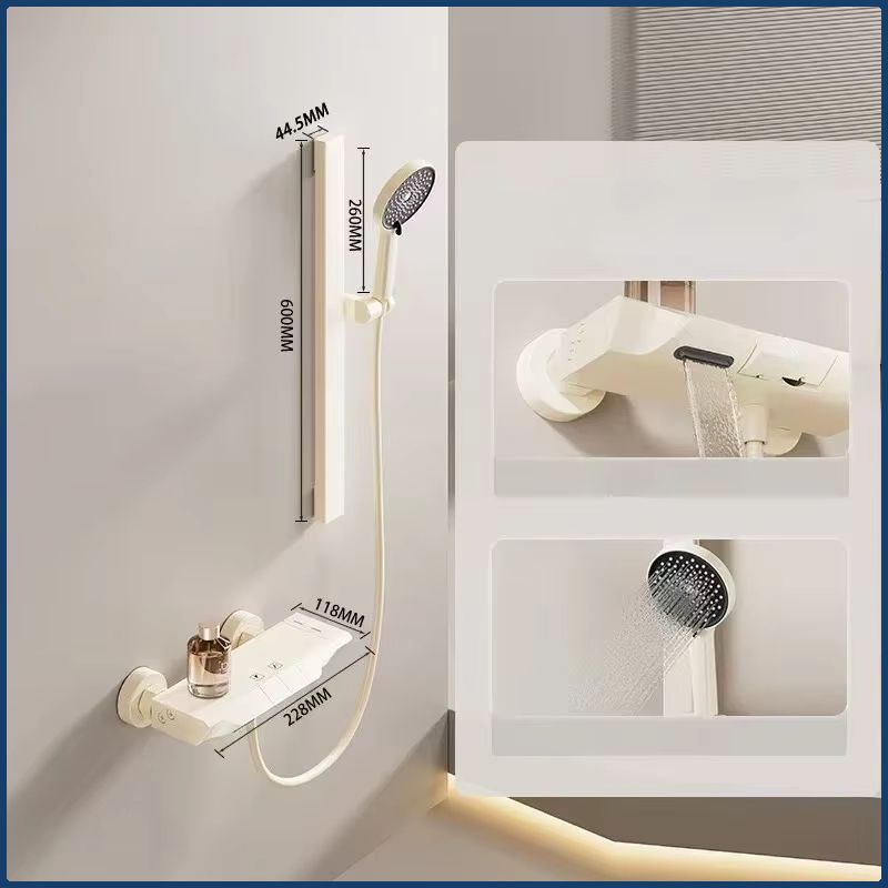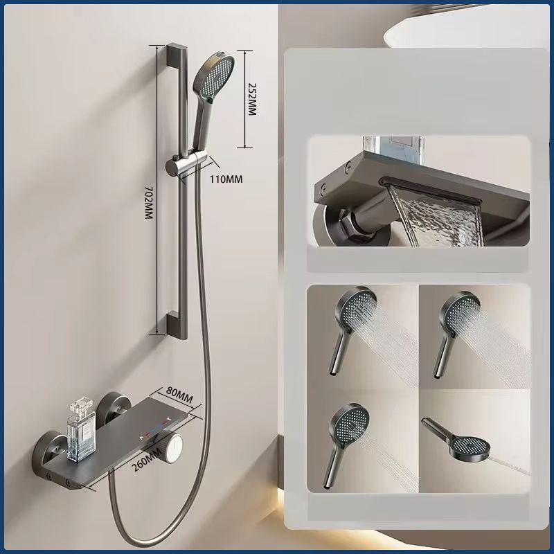 1.The kit includes a valve body, a hand shower (with 1.5 meter shower hose), a sliding rod kit, a set of installation accessories.
