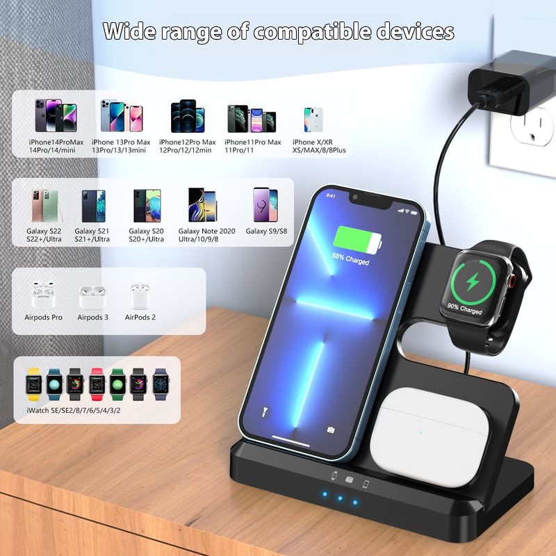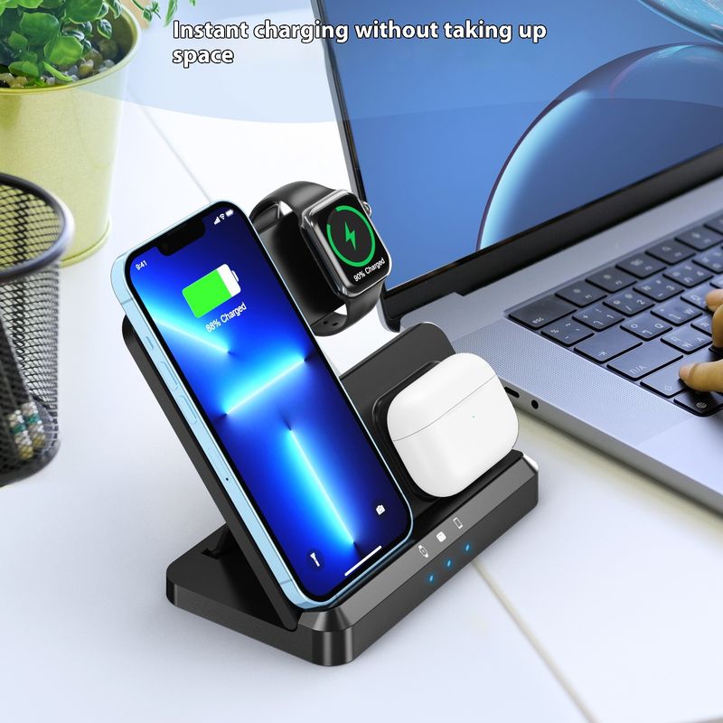 Applicable Mobile Phone Watch Wireless Charger Portable Folding Three-in-one Wireless Charger Electrical Appliances Black S80A