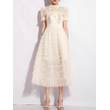 Apricot Elegant Tiered Dress Women Beading Lace Patchwork Streetwear Vestidos O-neck Runway Design Holiday Party Clothing Lady