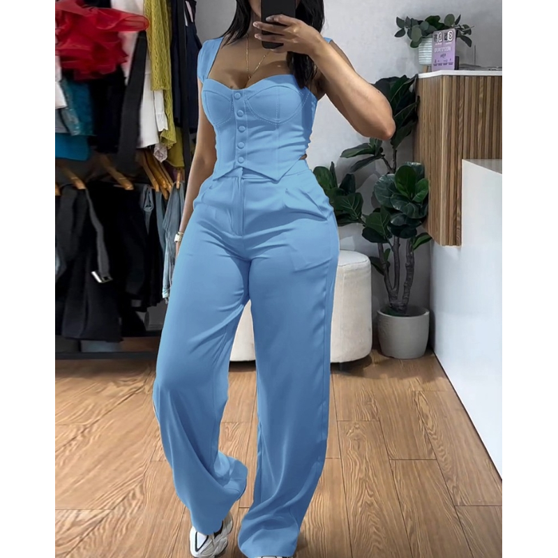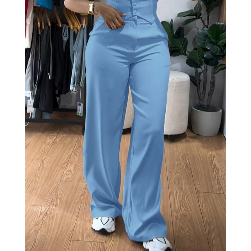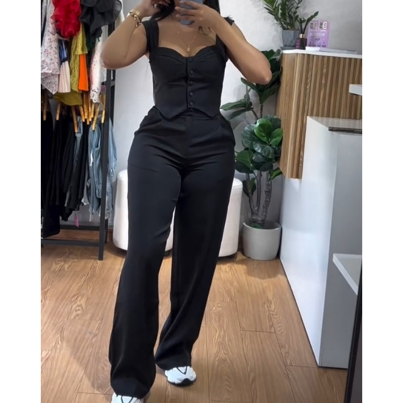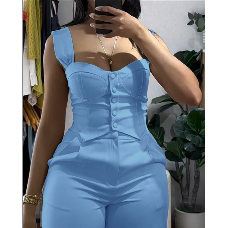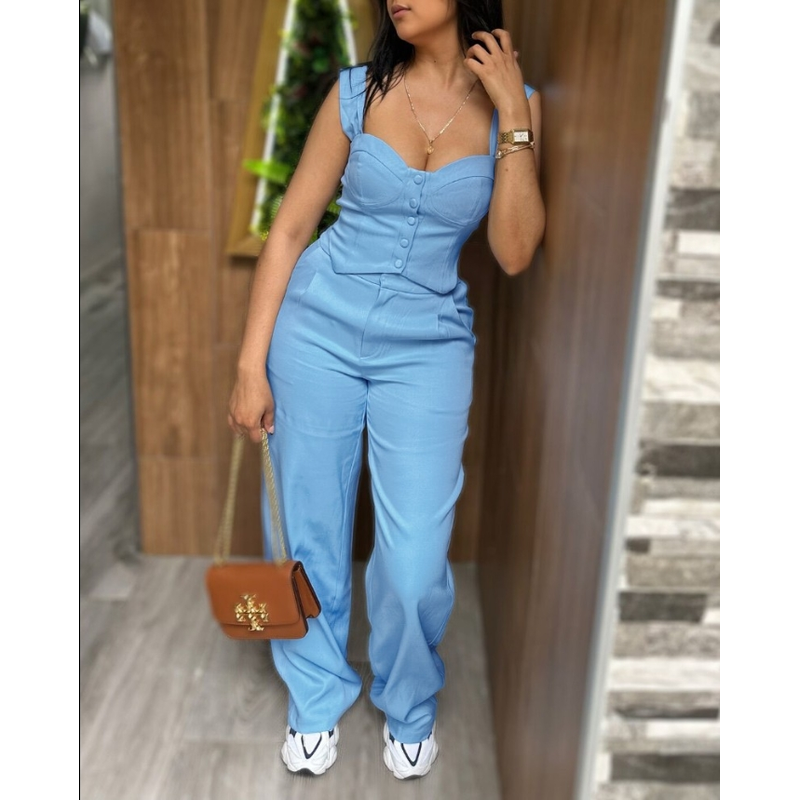 Apricot Sling Short Tight Vest Suit High Waist Wide Leg Trousers Apricot S