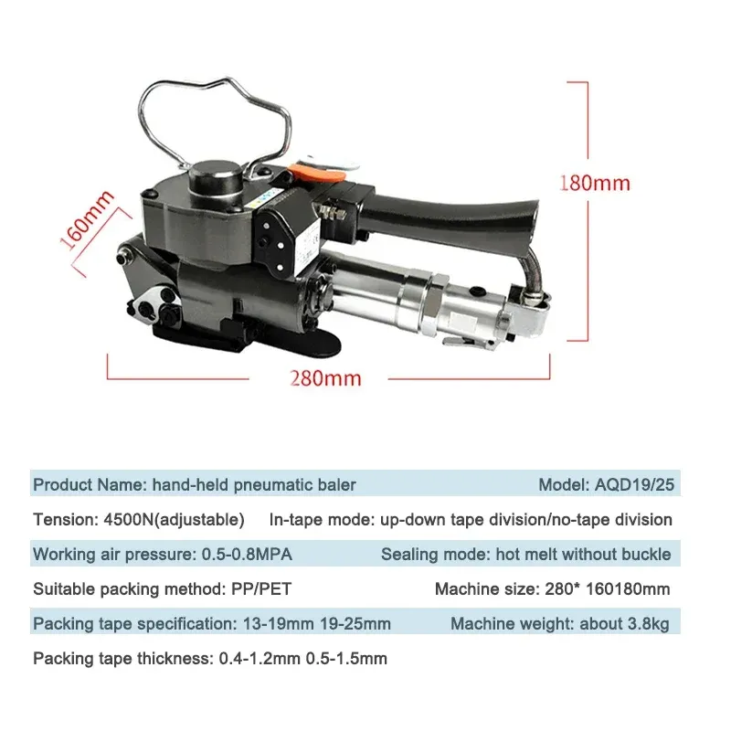 AQD19/25 Portable Baler Hand-Held Plastic Strap PP/PET Packing Banding Tool Pneumatic Hot Melt Wrapping Machine 13-19MM 19-25MM