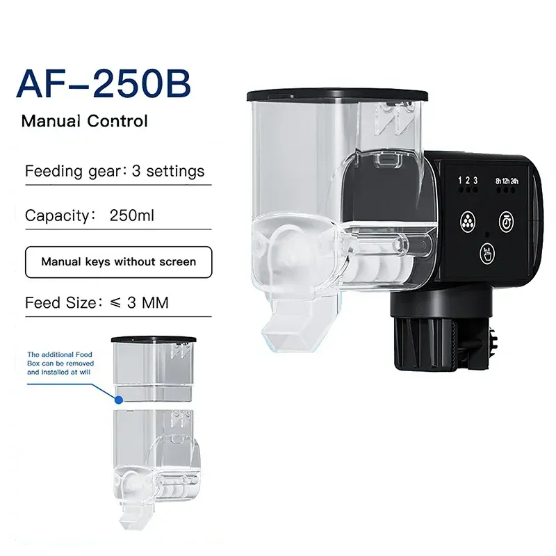 Precision quantitative feeding - The replaceable Quantitative Clip allows for accurate control with every feeding. With three feeding portion options, every aquarium can receive truly scientific feeding! Even when on vacation or a business trip, you need not worry about coming home to find excess fish food on the water surface. High residual fish food in the aquarium can have a serious impact on the ecosystem and even cause your fish to become bloated and die.