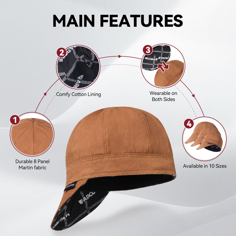 ARCCAPTAIN Welding Cap Reversible 8 Panel Anti-scalding Protective Welding Hats 10 oz Cotton Flame-Retardant Welder Work Hood