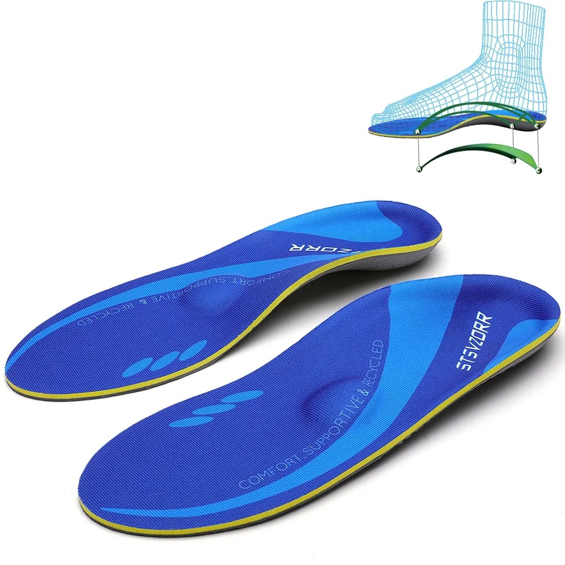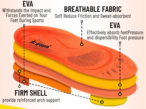 1,iFitna Orthotics Inserts are designed to support your longitudinal arch and provide the alignment needed to reduce over-pronation. They also help relieve foot injuries caused by repetitive stress by absorbing shock, providing cushioning, and transferring pressure away from high impact areas.