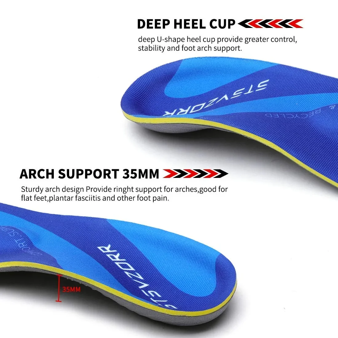 3. The arch height is 35 mm, which can provide arch support and comfort for people with plantar fasciitis and heel pain, enhance stability and promote natural foot movement.