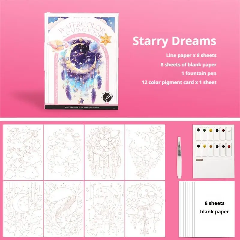 4. Inspire Creativity for All Ages: Featuring original and inspiring designs, this watercolor set is perfect for artists across all skill levels, from beginners to experienced painters. The detailed line art templates offer a fun, guided approach to coloring, while the blank sheets encourage imaginative freehand drawing, making it an excellent tool for developing artistic skills, enhancing concentration, and promoting relaxation.