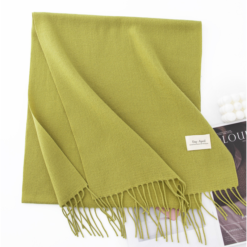 Artificial Cashmere Scarf Female Warm Shawl Mustard Green 70X180cm