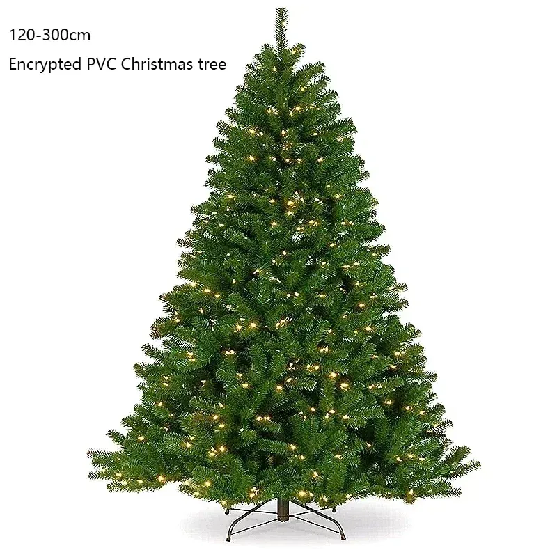 Artificial PVC Encrypted Christmas Tree with LED Lights and Foldable Metal Base Chrismas Tree for Home Decorations