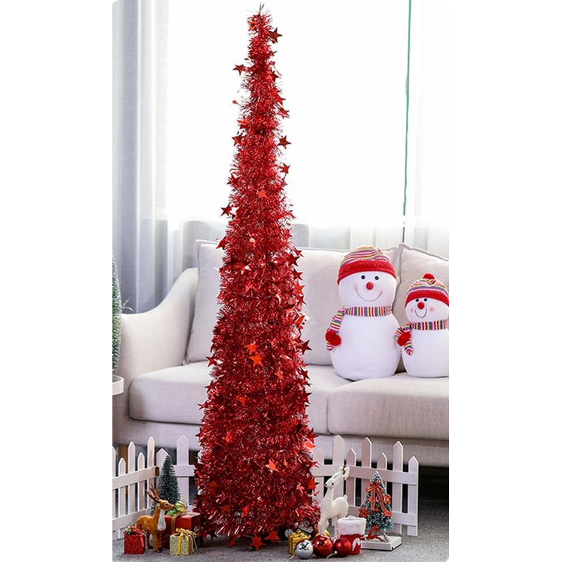 Artificial Tinsel Up Christmas Tree With Stand Gorgeous Collapsible Artificial Christmas Tree For Christmas Decorations Red 1.2m
