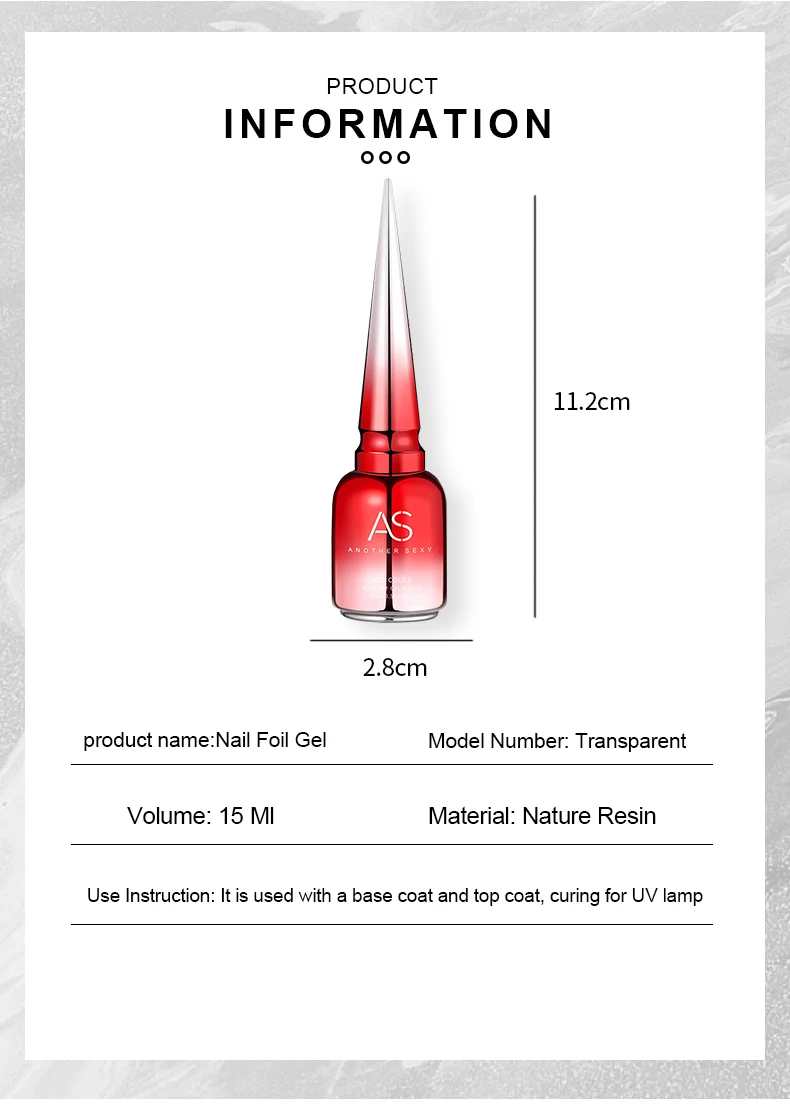 AS 15ml Transfer Foil Gel Nail Polish Soak Off Led Uv Gel Varnish Fast Dry Star Sticker Glue Stamp Gel