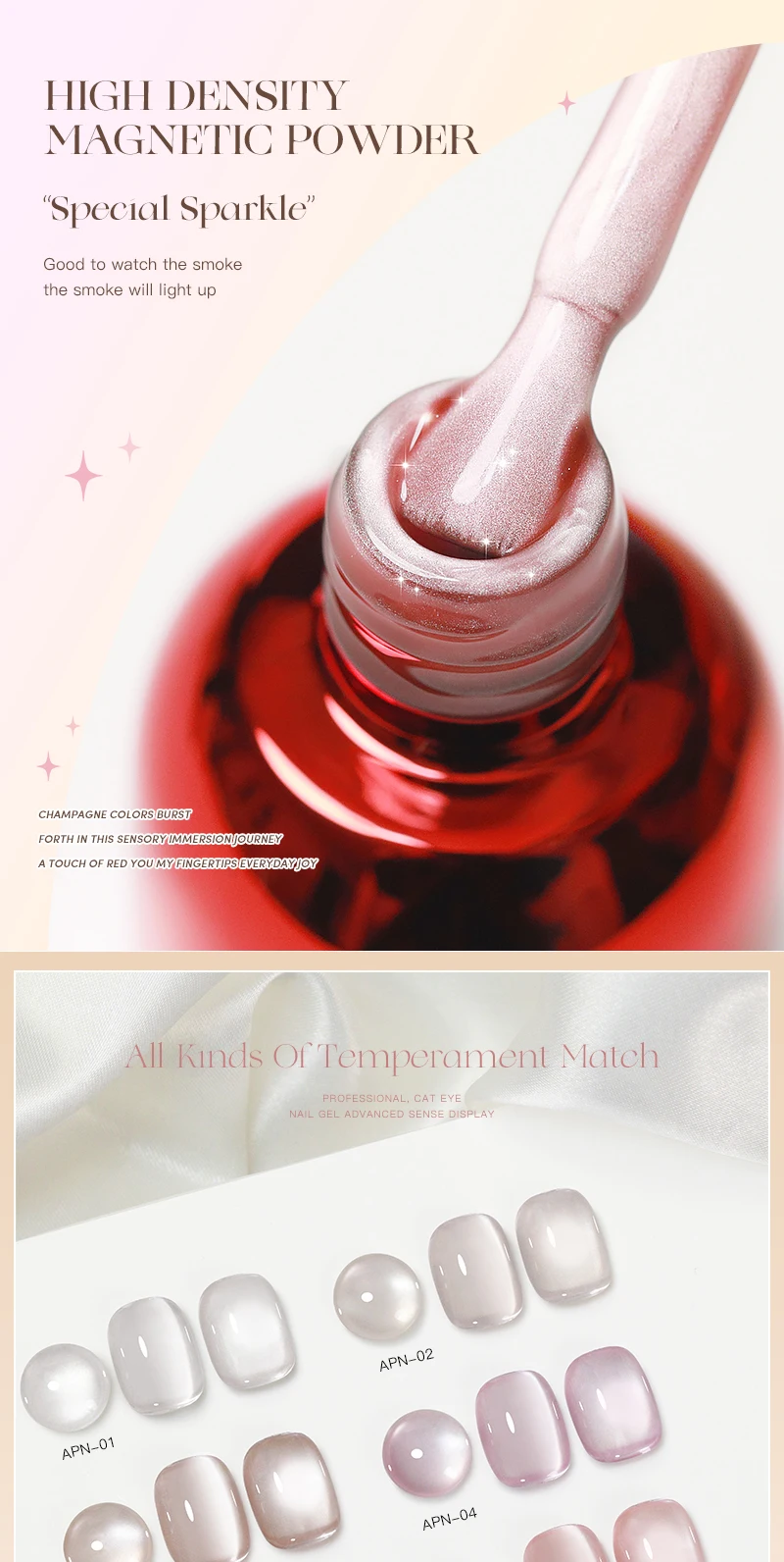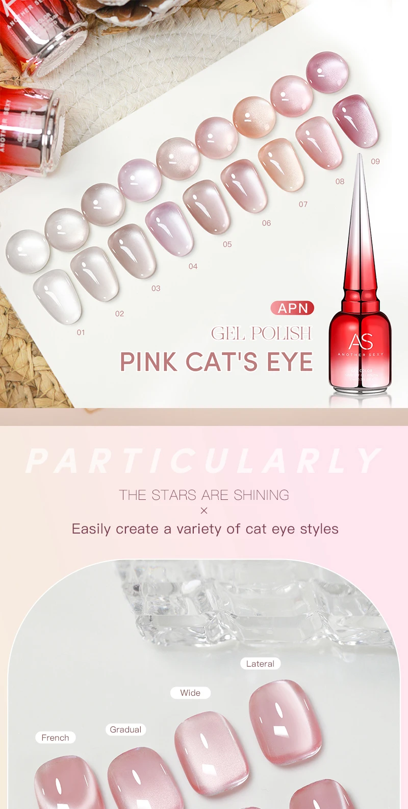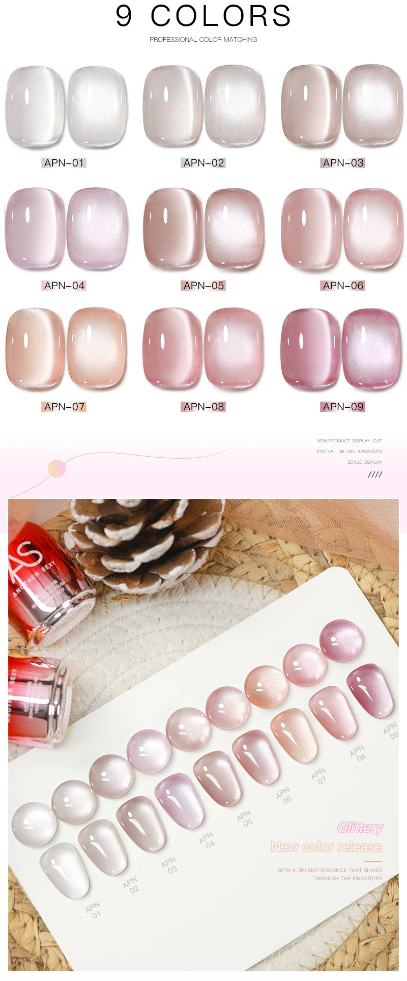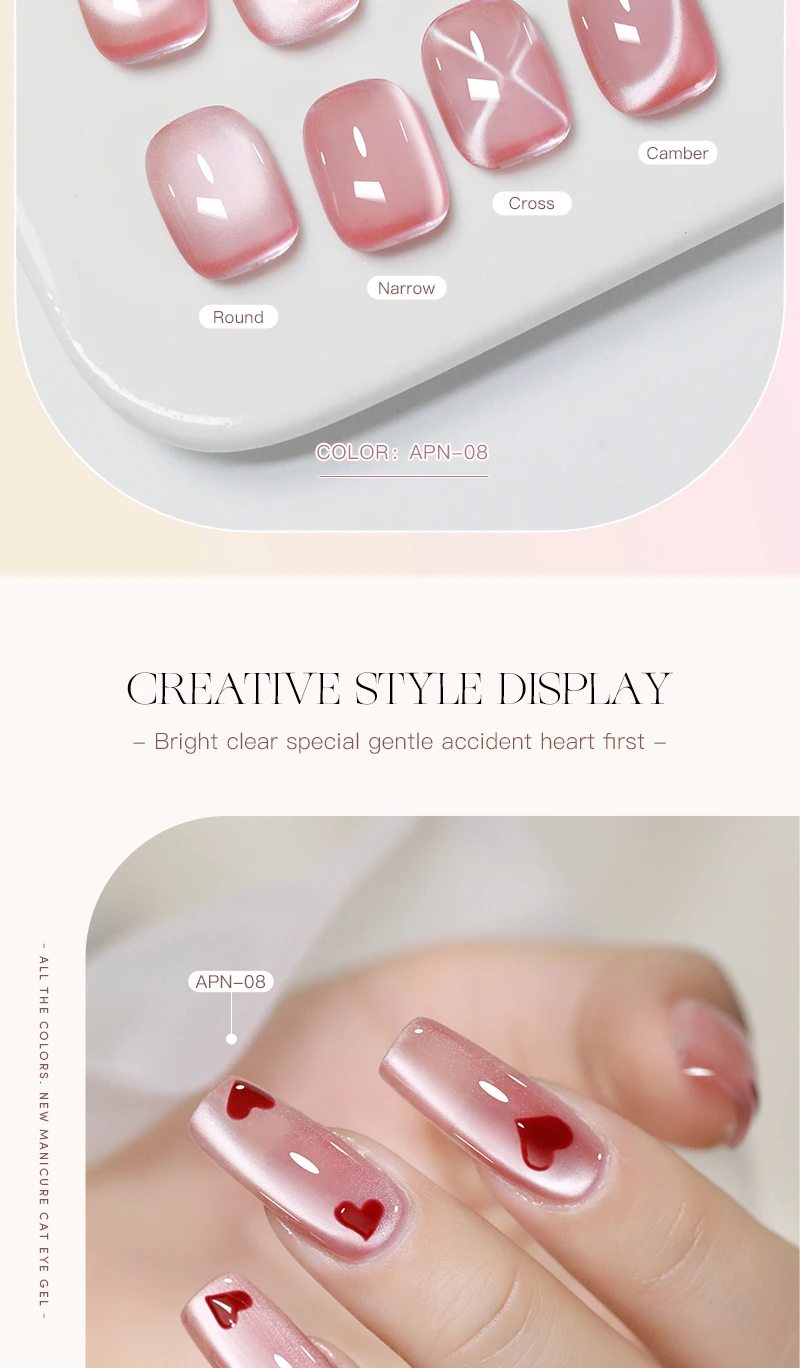 Ceramics 9D Cat Eye Gel Polish: The moonlight cat eye gel can such out different fantastic charming cat eye types, like 9d cat eye, galaxy starry sky with spark crystal cat eye, slash cat eye, flower cat eye... Allow you for salon professional nail art design or home DIY which a unique gift for yourself or your girl friend.