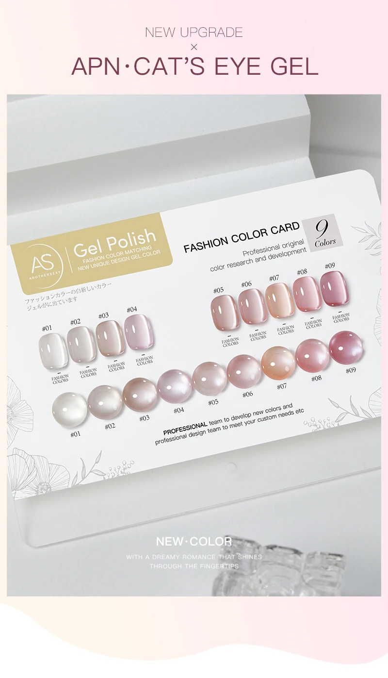 AS Colors Nude Magnetic Cat Eye Gel Nail Polish Pink UV LED Soak Off Gel Varnish Crystal Cat Eye Gel Lacquer Professional Enamel