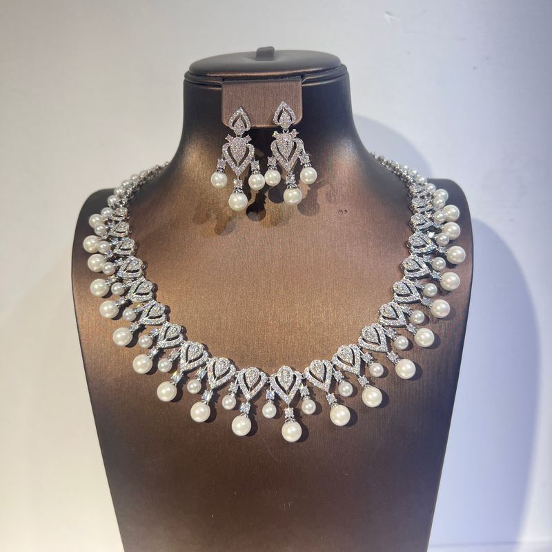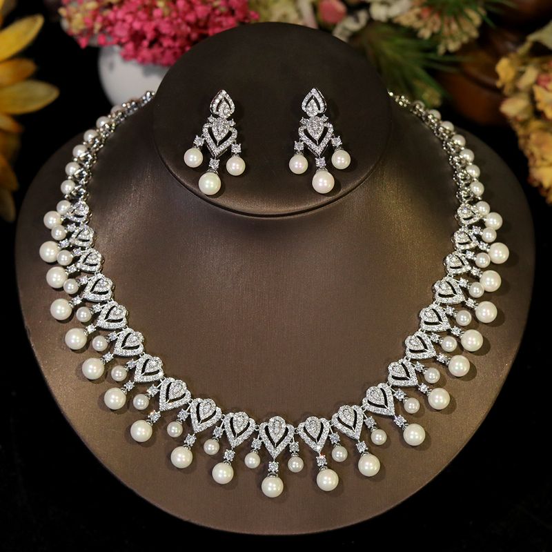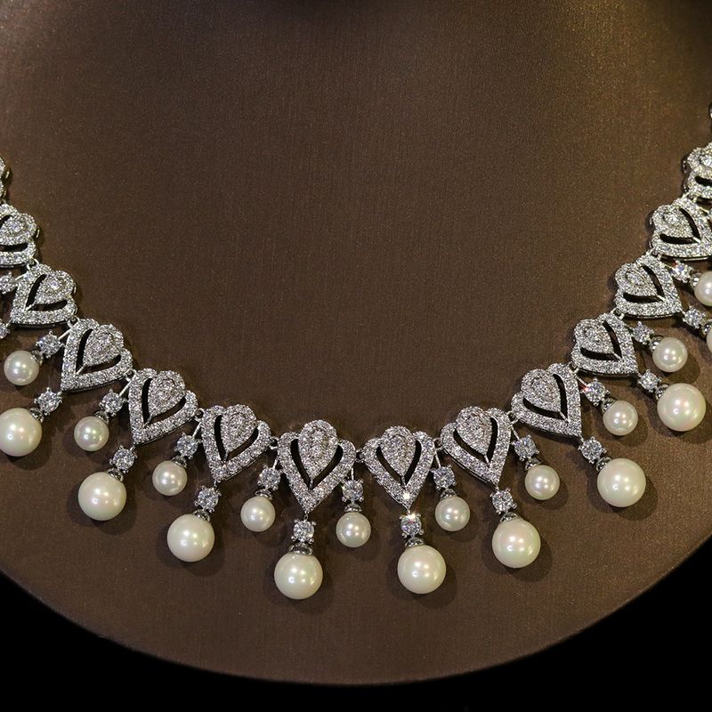 ASNORA Fashion Round Choker Heart Shape Design Pearl Necklace For Women Wedding Bridal White Zirconia Jewelry Set X0587