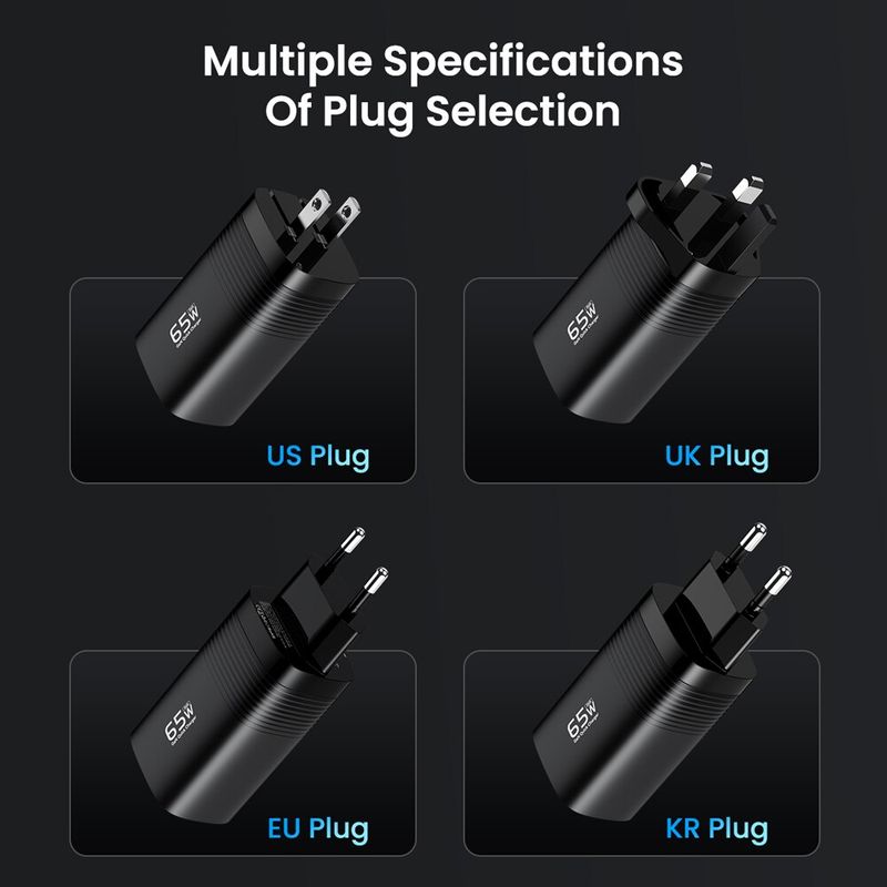 🙆[Phone/Laptop/Tablet Fast Charging] The charger supports PD-65w dual Type-C port blind plugging, so your phone, laptop and other devices can be charged quickly.