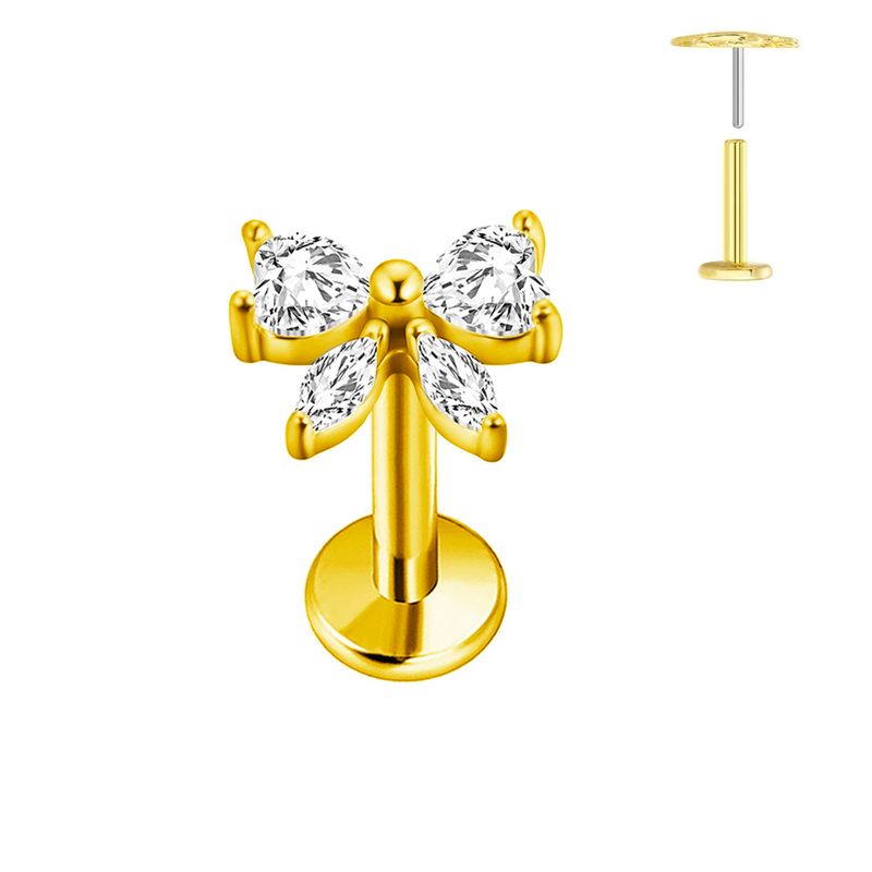 ASTM F136 G23 Titanium Heart-shaped Earring Stud 16G 18G 20G Threadless Piercing Butterfly Push in Lip Stud Daith Labret Conch