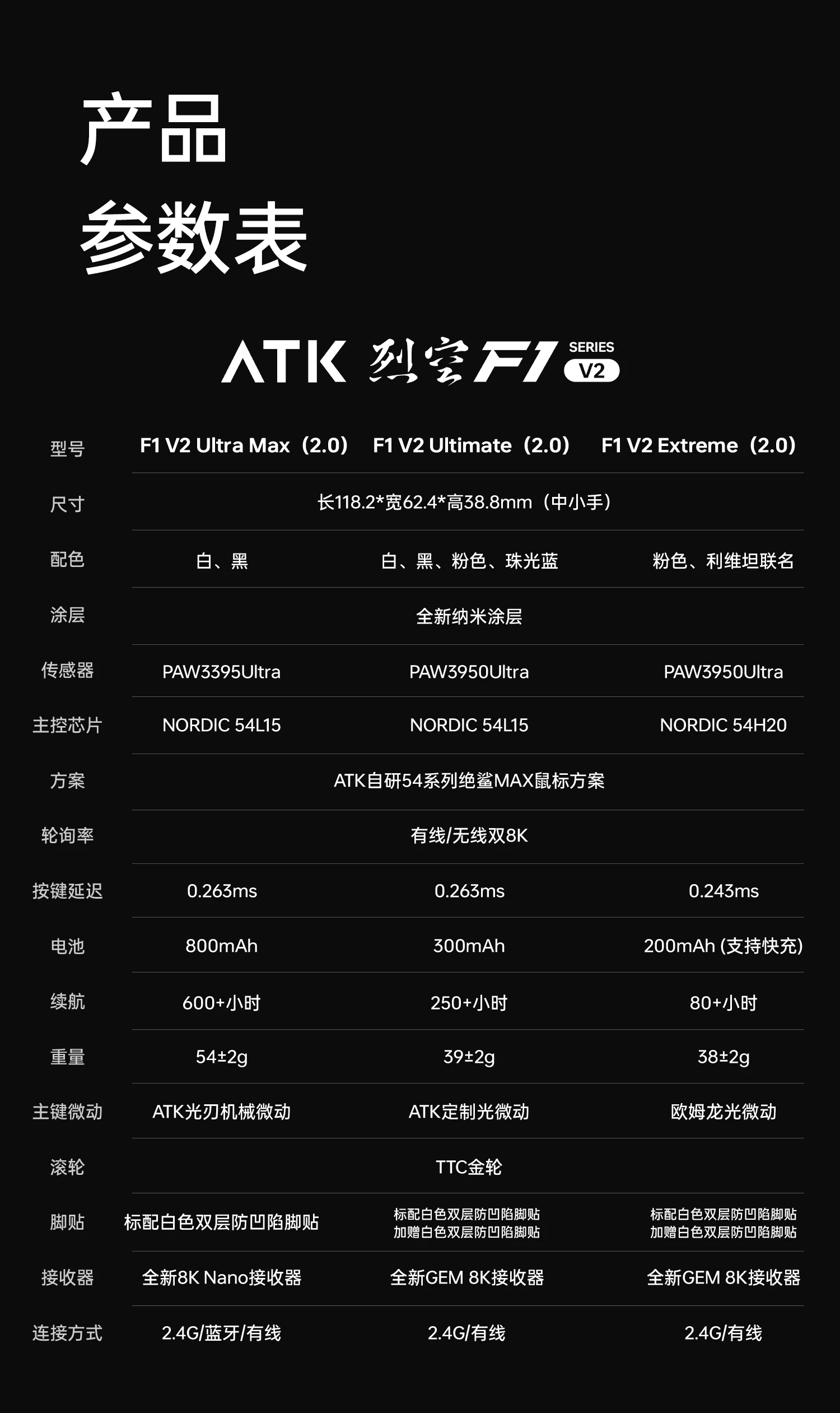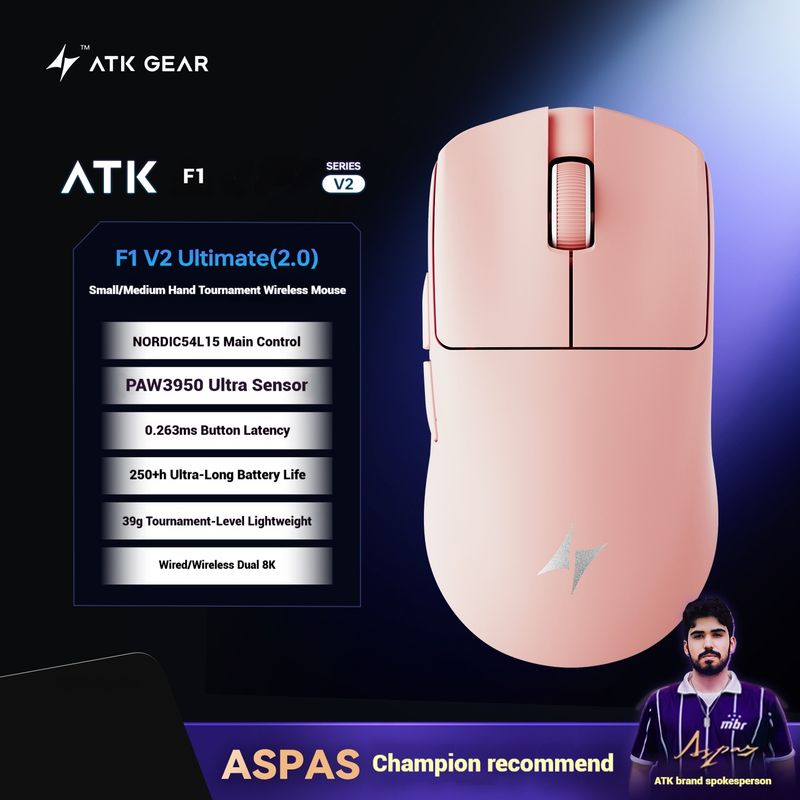 ATK Blazing Sky F1 V2 Ultimate Gaming Mouse Lightweight PAW3950Ultra 8000Hz Ergonomic Wireless Extreme