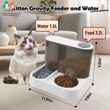 • Large Capacity:Large Capacity:Cat food dispenser gravity can hold about 2.2L of food and about 1.5L of water, the feeder outlet is 45°tilted and 2.5 inches wide.One fill up can last your kitten's ration for a week, you can go on party without worrying about pet's hungry
