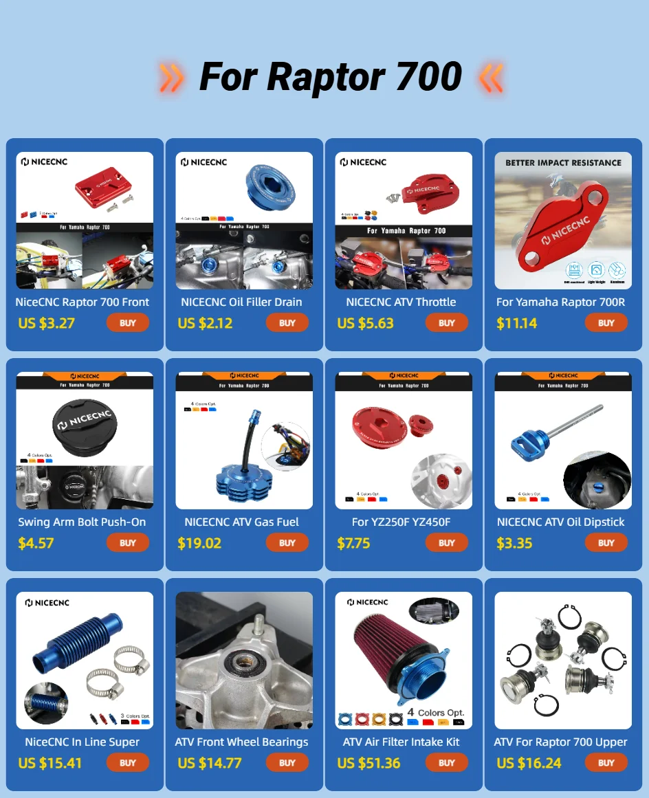 Brand::NiceCNC Material:Billet Aluminum Surface Finish:Anodized Processing Model:CNC-Mahined Colour Optional:Black, Blue Compatible Make:For Yamaha Compatible Model:Raptor 700 700R100% Brand New Expansion Tank Guard. Light-weight billet aluminum and CNC-Machined. Perfect upgrade your plastic tank and dress-up your engine bay. Choose the lighter body to extract more original power and get the aggressively sporty look now! Direct replacement and easy installation.Package Include: 1x Expansion Tank GuardFitment: For YAMAHA Raptor 700 2006-2011 For YAMAHA Raptor 700 2013-2020 For YAMAHA Raptor 700R 2012 For YAMAHA Raptor 700R 2016-2020