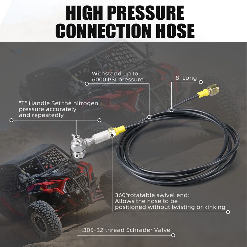 Compatible with all the shock with a schrader valve on the off-road bike, ATV, UTV and cars.