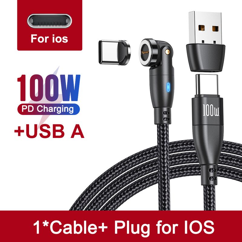 AUFU 540 Rotate 5A Magnetic USB C Cable PD 100W Fast Charging for MacBook Type C Cable For Xiaomi POCO Realme Samsung S23 Huawei Data Charge Cable PD 27W for iPhone 14 13 12 11 XR