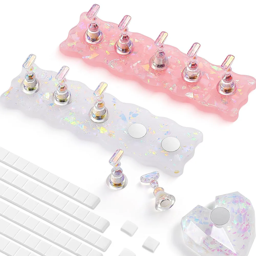 Aurora Nail Stand Pink White Nail Holder For Painting Magnetic Press On Nail Tech Must Haves Practice Acrylic Nail Art Display