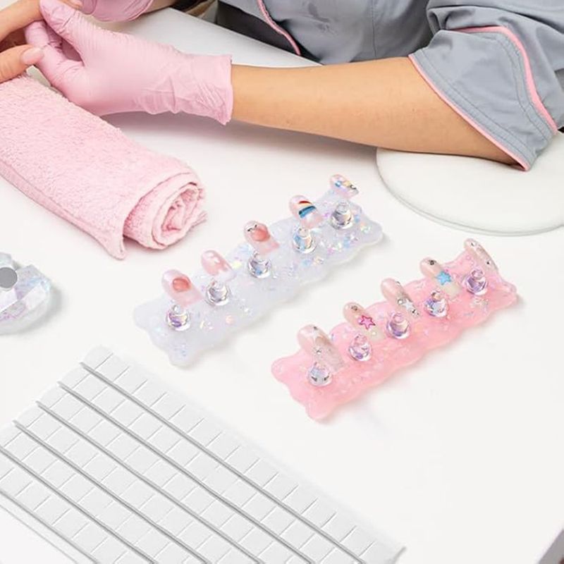 Aurora Nail Stand Pink White Nail Holder For Painting Magnetic Press On Nail Tech Must Haves Practice Acrylic Nail Art Display