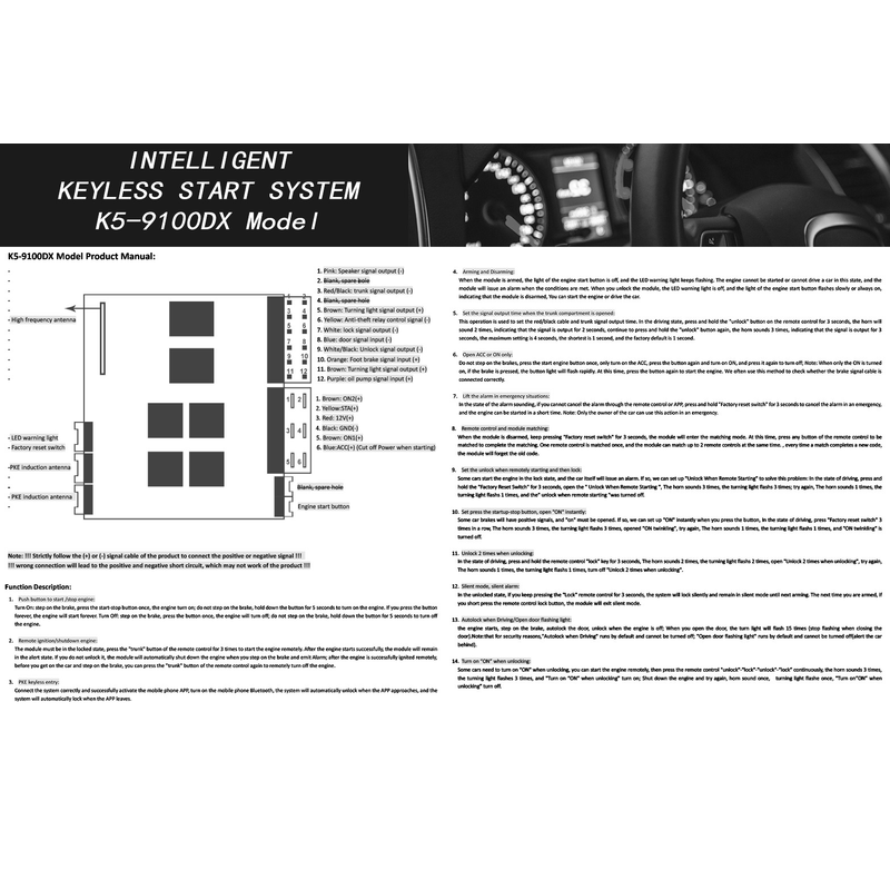 2. Installing this system requires some professional automotive electronics knowledge. Please read the product manual carefully. Please pay attention to output signal cables must be connected to the correct signal according to the "+" or "-" on the product manual. Wrong connections may cause short circuits or burnout of the product.