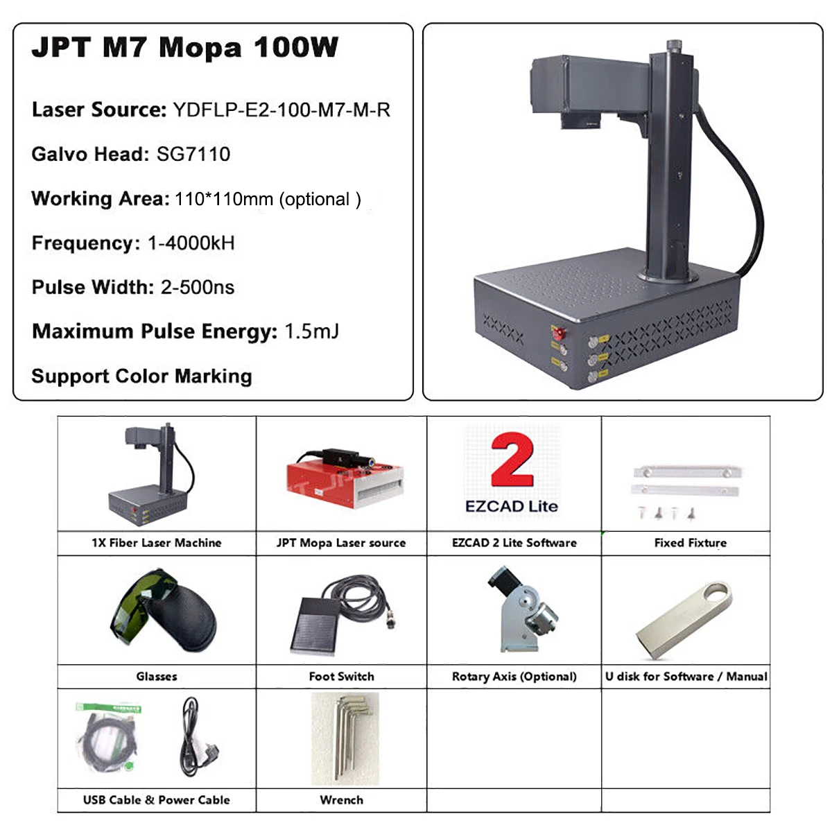 Autofocus 100W JPT Mopa Fiber Laser Marking Machine Laser Deep Engraving Fiber Laser Engraver for All Metals Cutting Jewelry