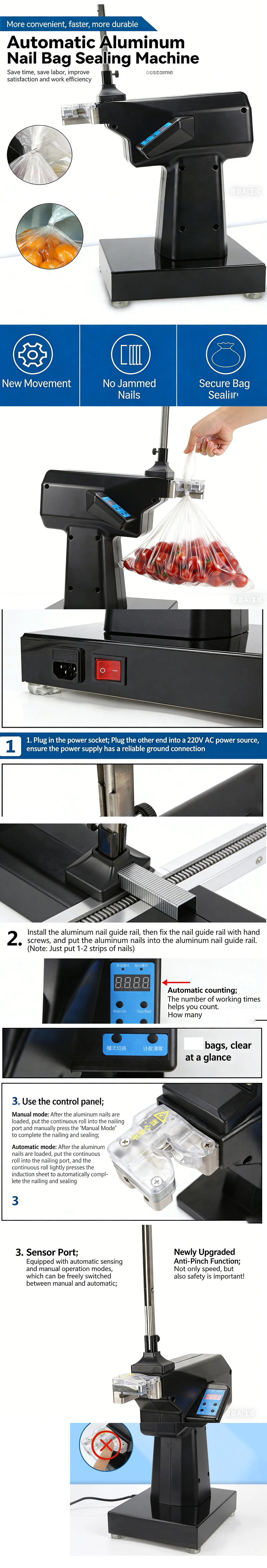 WIDE RANGE OF APPLICATIONS: Ideal for various settings such as supermarkets, bakeries, beverage stores, wineries, and condiment factories. Effectively meets diverse bagging requirements, from sealing necks to securing PE or PP bags with aluminum staples