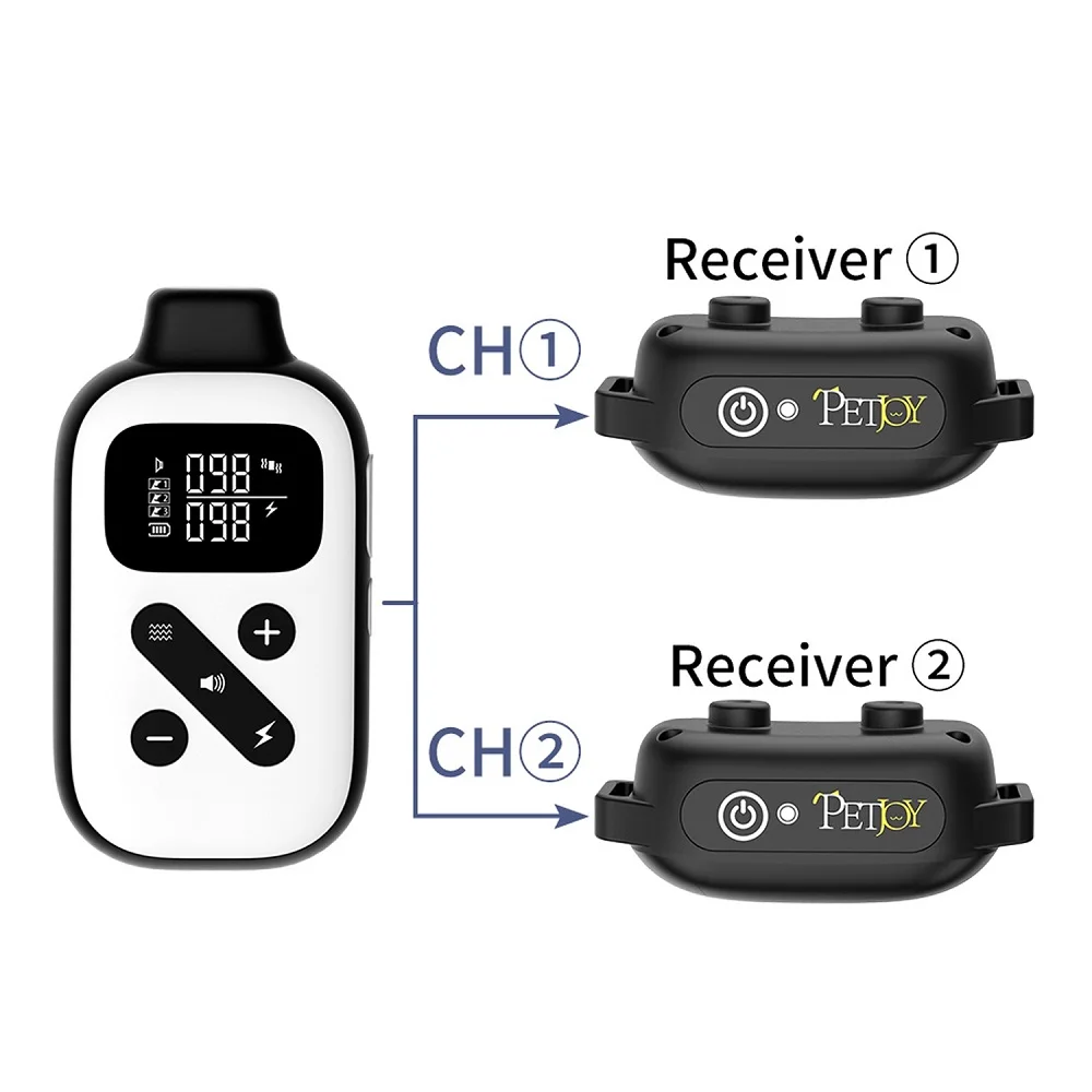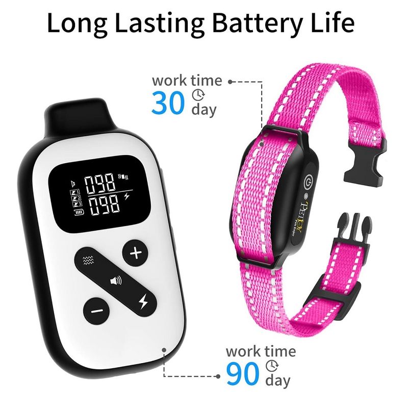 【 Waterproof and Battery 】 The bark and training collar combo has an IPX7 waterproof and long-life battery. The work time after a full charge is 90 days for remote control and 30 days for receivers.