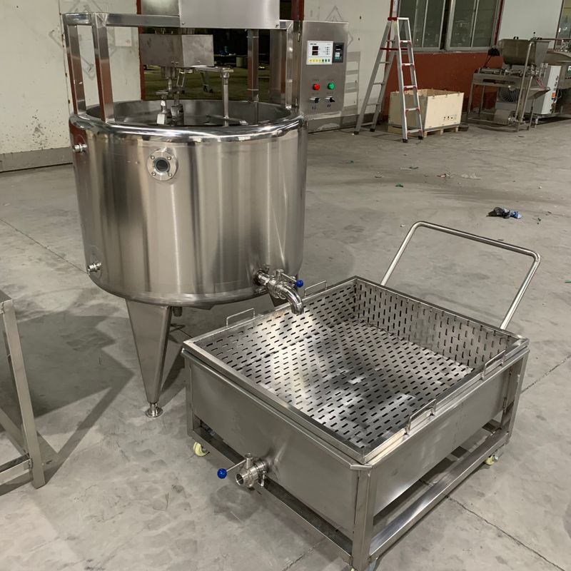 Device Description 1. The equipment is made of high-quality SUS304 stainless steel (thickness 2mm), and the sterilization temperature and speed can be set according to the process requirements. 2. Good sterilization effect, low noise, adjustable speed, durable, safe and reliable, temperature can be automatically controlled, and convenient maintenance. 3. The tank is divided into three layers, the outermost layer is an insulation layer, the middle is a hot water sterilization layer, and the inner layer is milk. 4. There is a stirring device above the milk tank, and the milk is stirred by the stirring device to heat the milk evenly. 5. Pasteurized milk should be stored at a temperature of about 4°C, and can only be stored for 3-7 days.