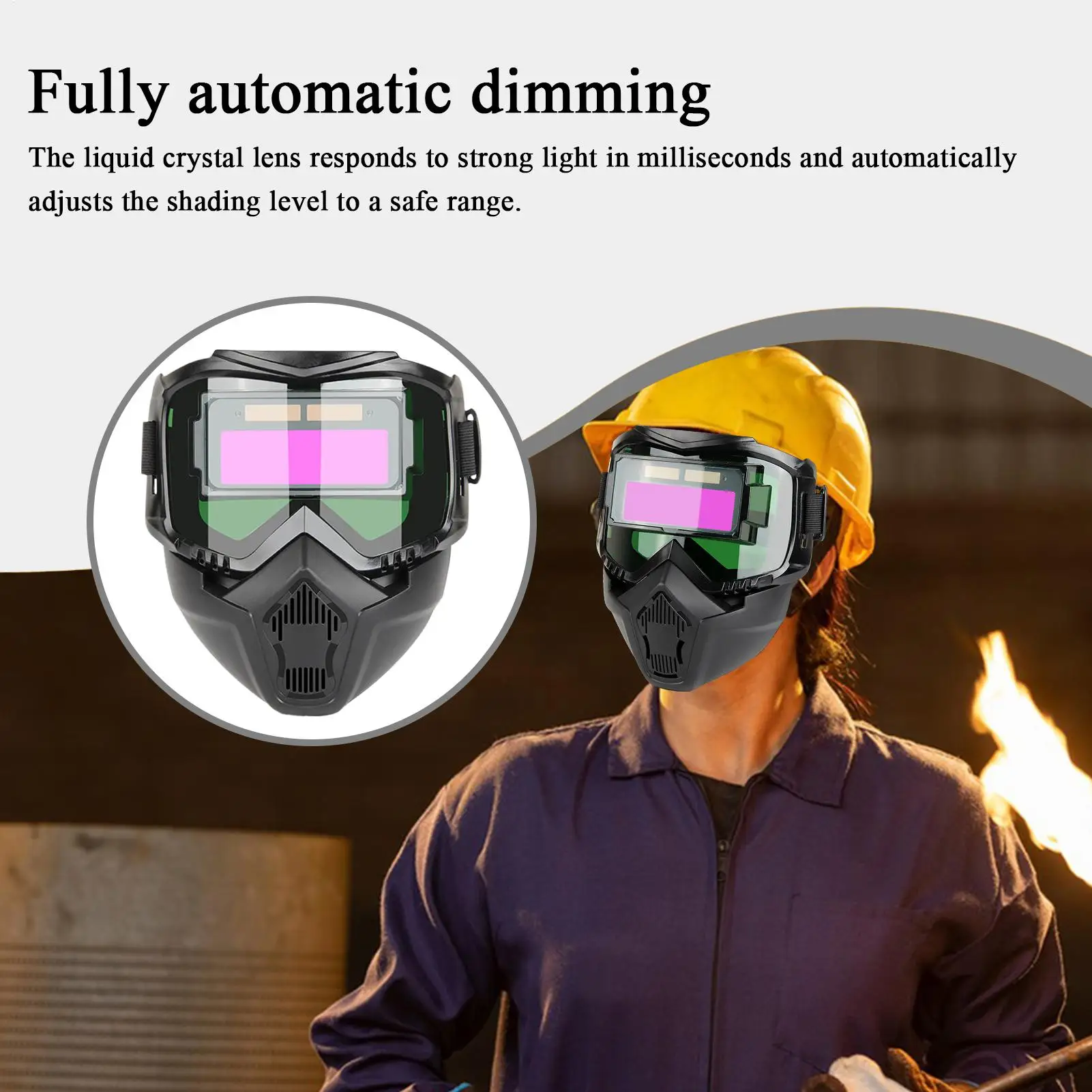1.Adaptive Shading System: Assure dependable eye defense using an automatic dimming function that swiftly responds to strong illumination, and modifies shading levels for enhanced clarity and user safety