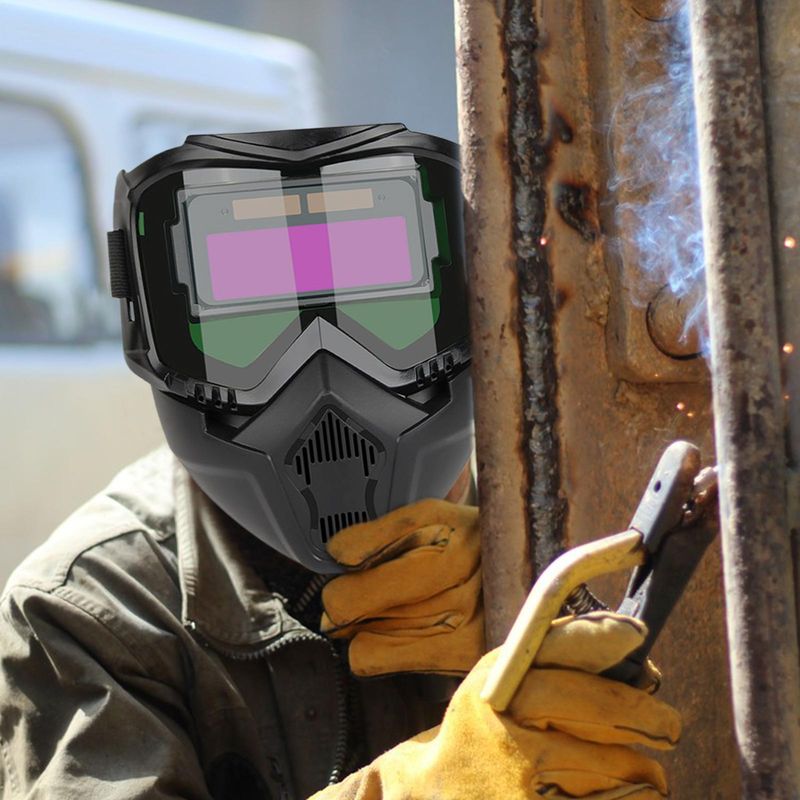 Designed for electric arc, MIG, TIG welding, polishing, and grinding, this helmet incorporates automatic dimming to protect against harmful light exposure. The adjustable strap assures a snug fit, while the breathable structure promotes airflow during demanding tasks in manufacturing and metal processing. Detachable components improve usability by simplifying cleaning and organization without sacrificing durability.