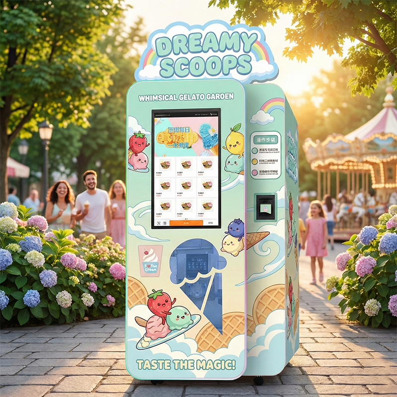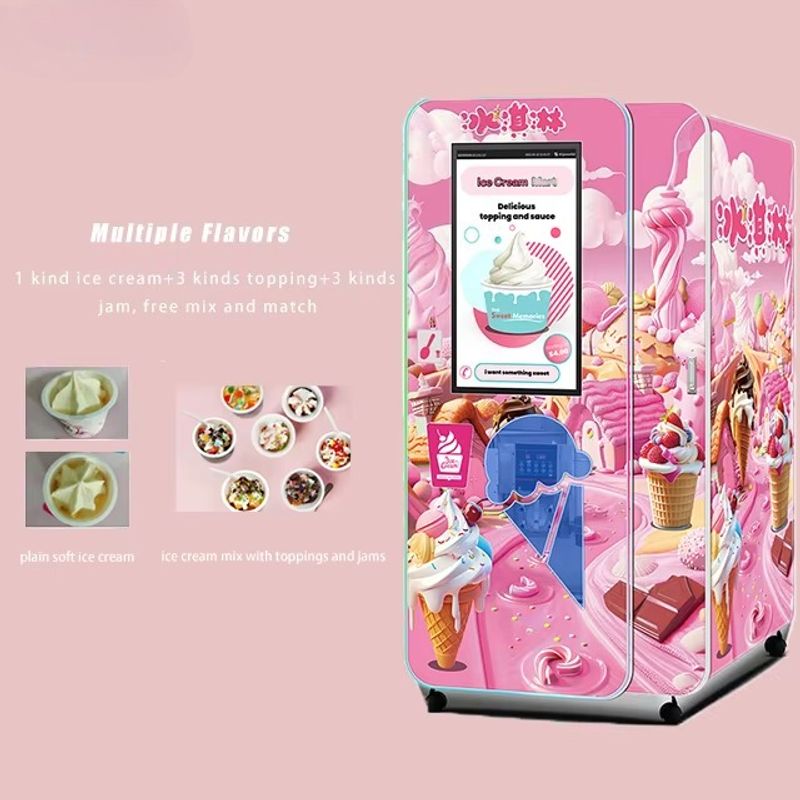 Automatic Frozen Yogurt Vending Machine Self-Service Soft Serve Dessert Dispenser with Cooling System