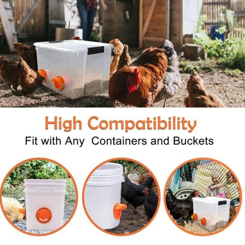 Chicken Feeder Poultry Feeder DIY Rainproof Feeder Port Kit For Bucket Tank Barrels Bins Gravity Feed Kit Troughs