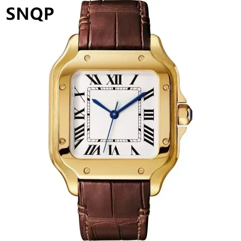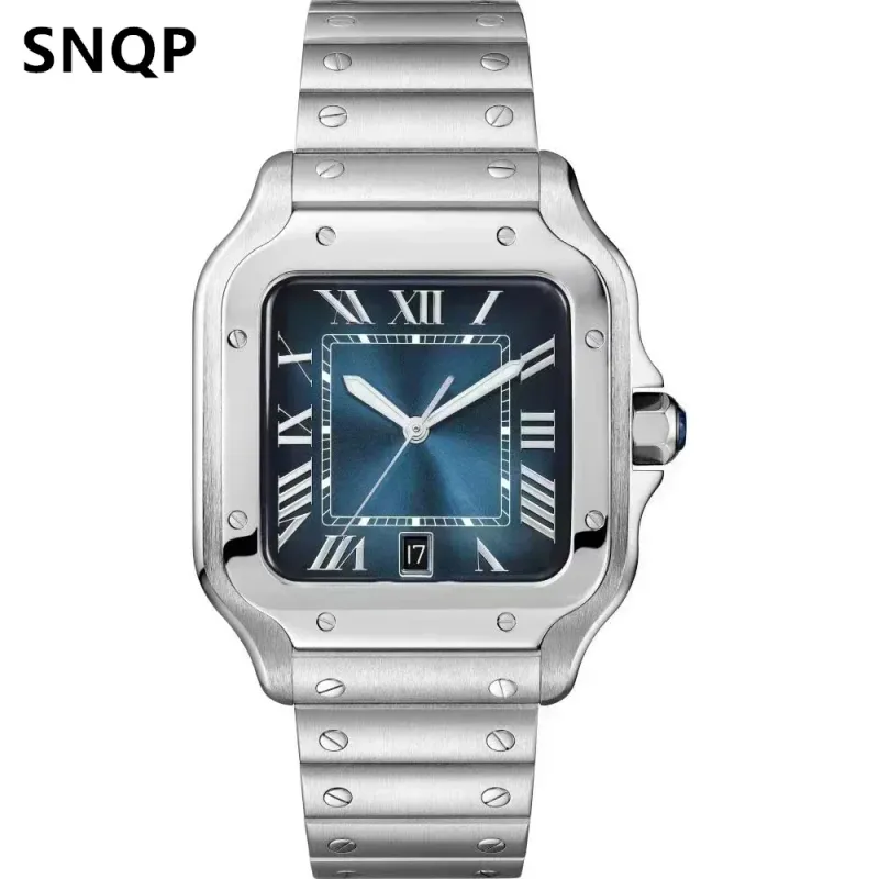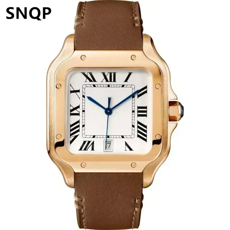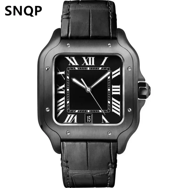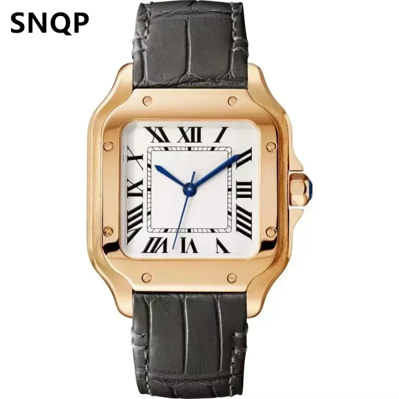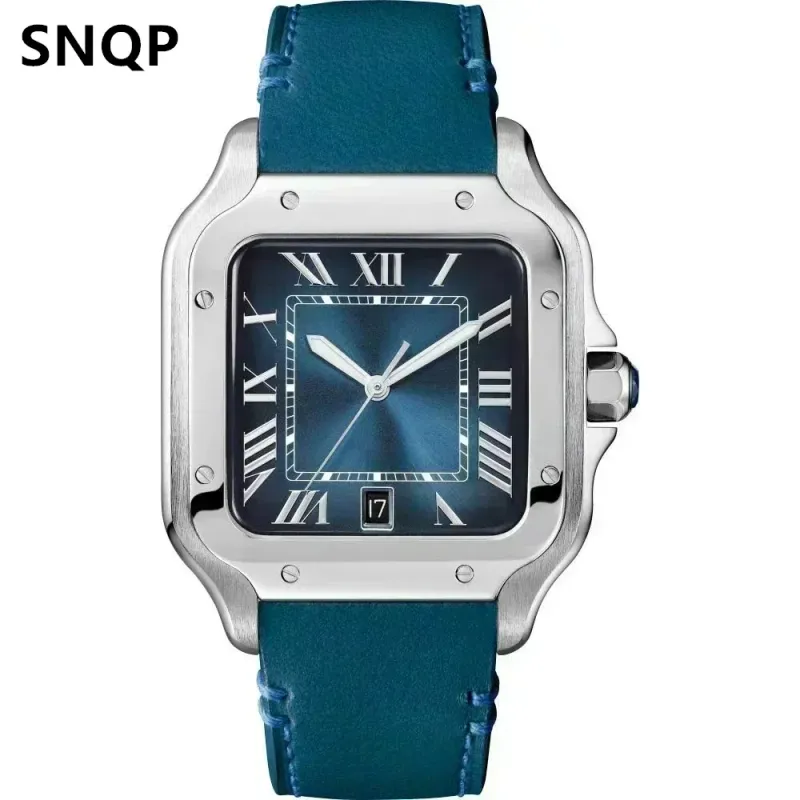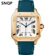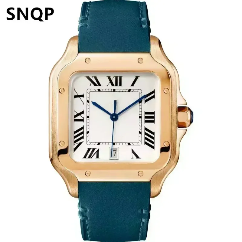 Automatic mechanical women's leather stainless steel blue watch, custom black and white Roman gold bezel