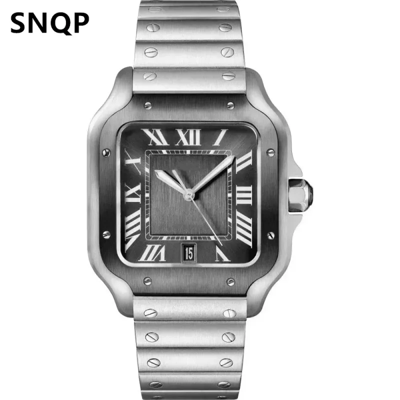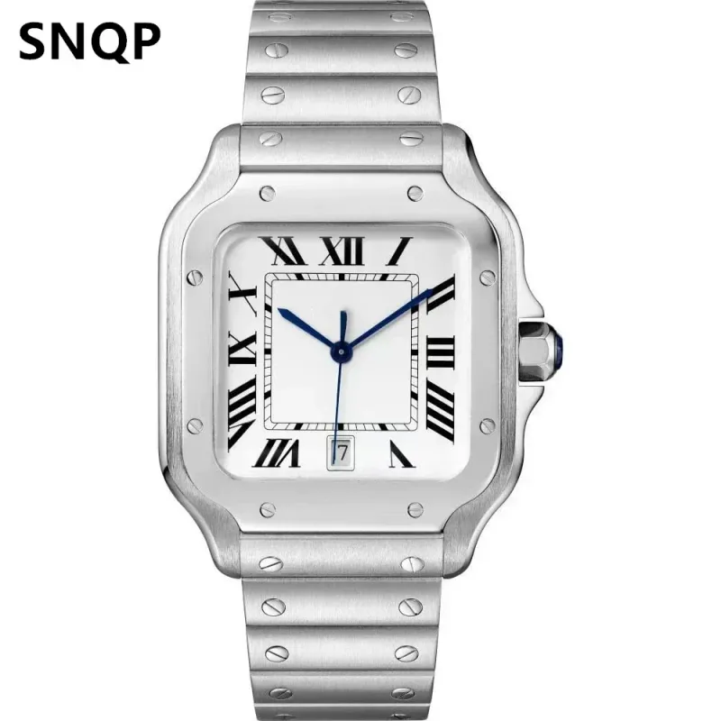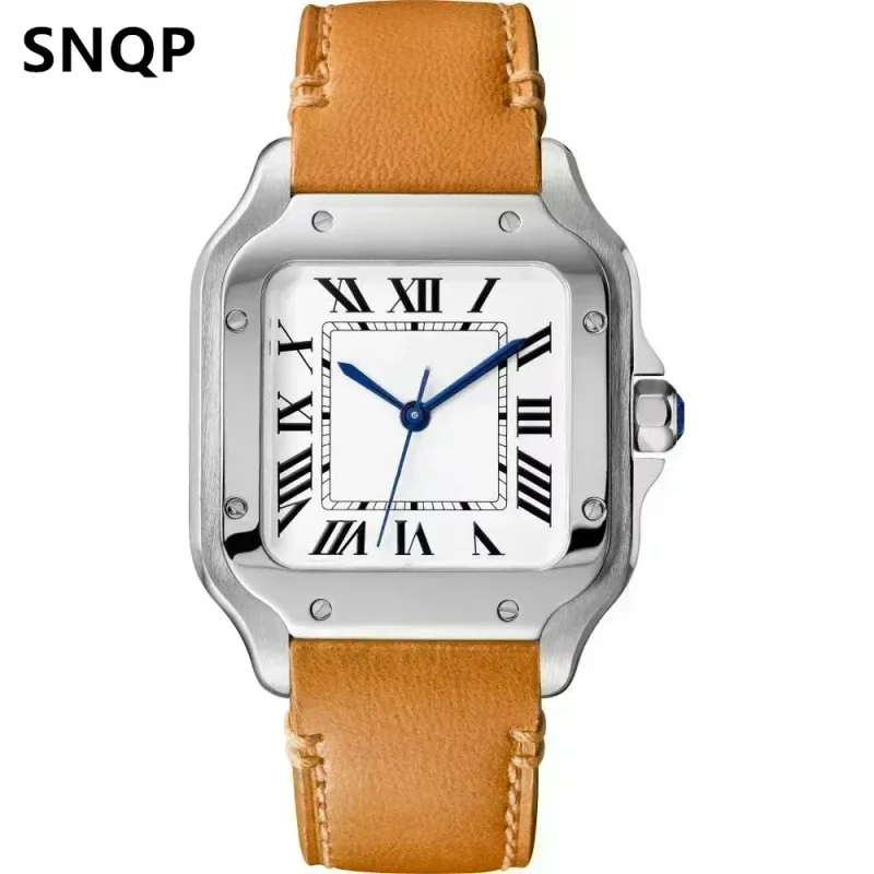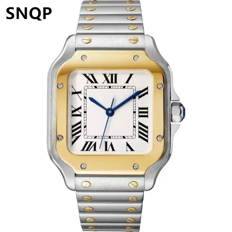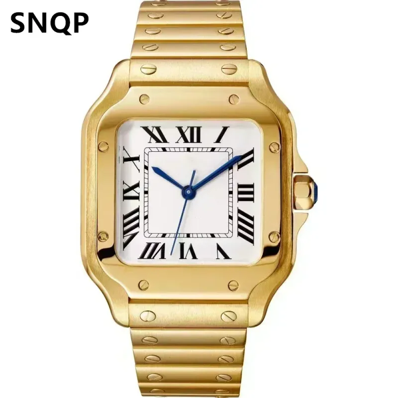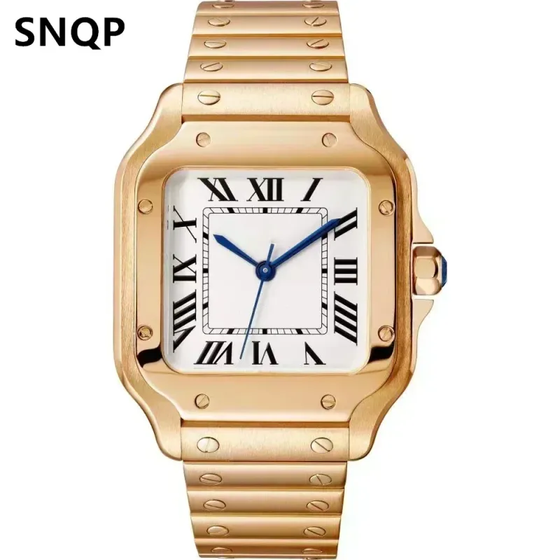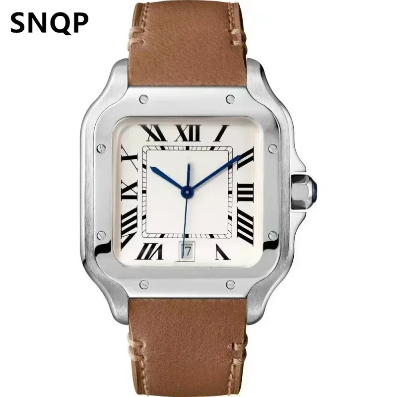 Automatic mechanical women's leather stainless steel blue watch, custom black and white Roman gold bezel