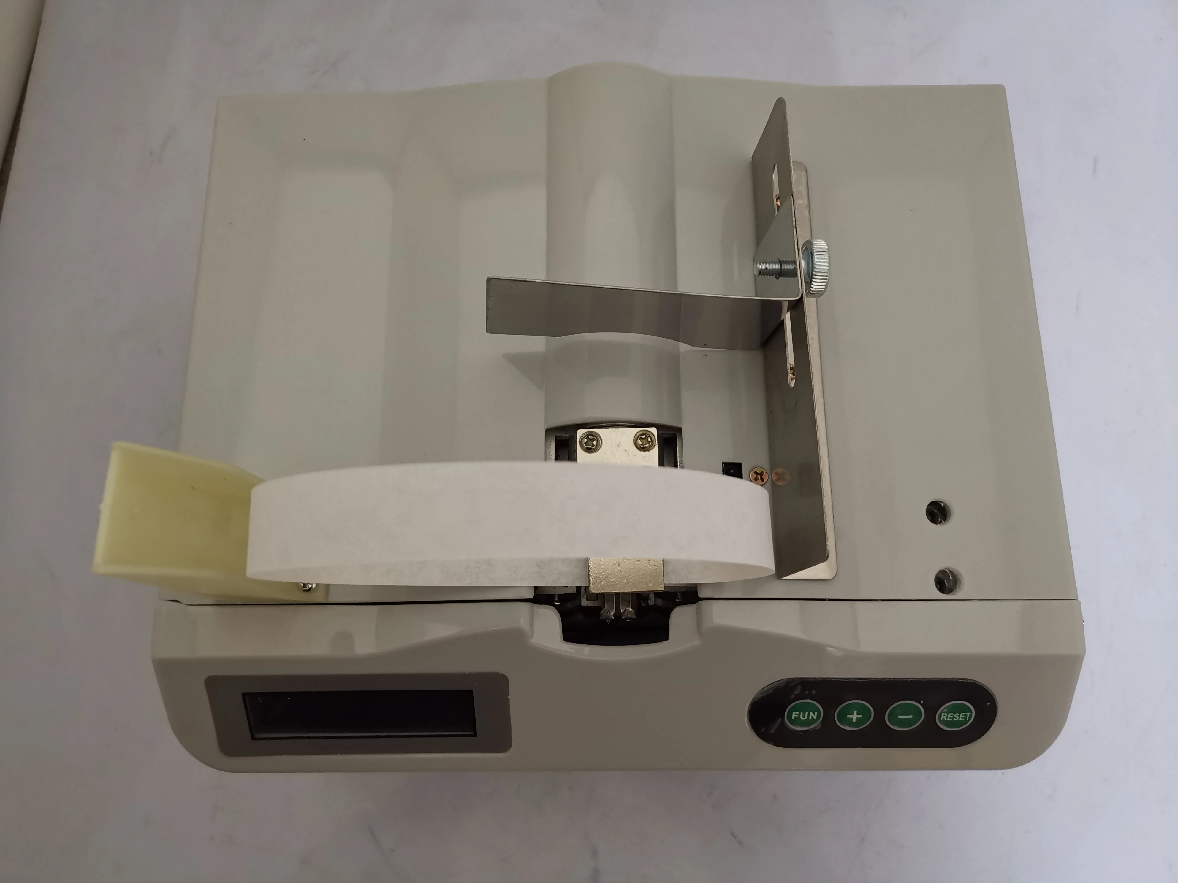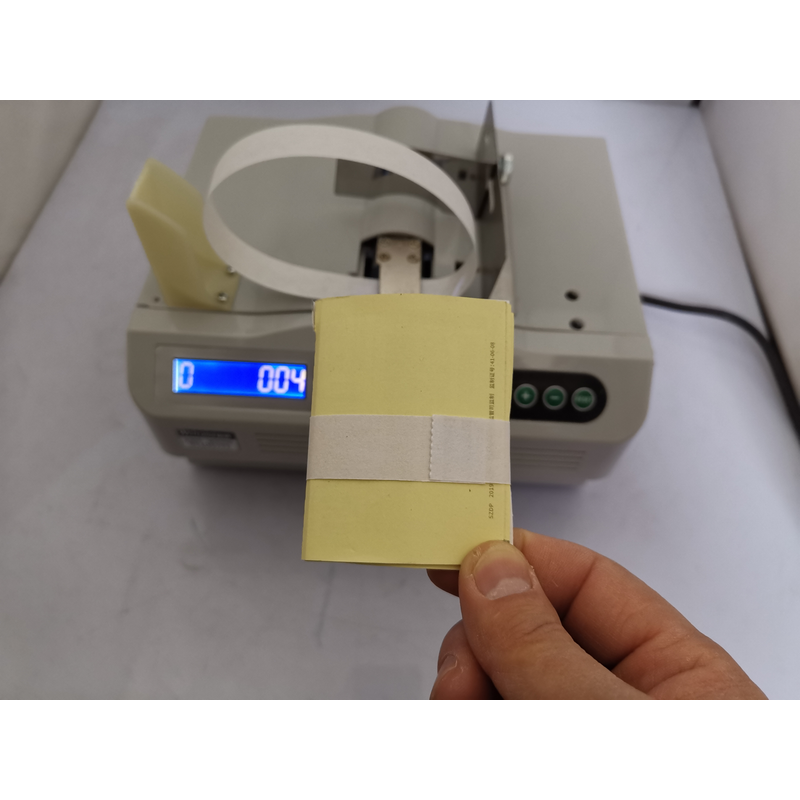 RQ228 small desktop bundling machine can be used for bundling picture albums, medicine boxes, food, cards, banknotes, documents, etc. The machine has microcomputer control, automatic binding, low noise and strong stability.
