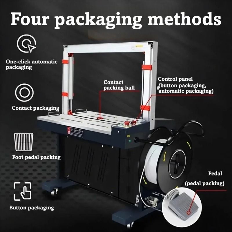 Automatic Stainless Steel Strapping Machine Foot Pedal Control For Courier Parcel Cardboard Box Sealing And Tying