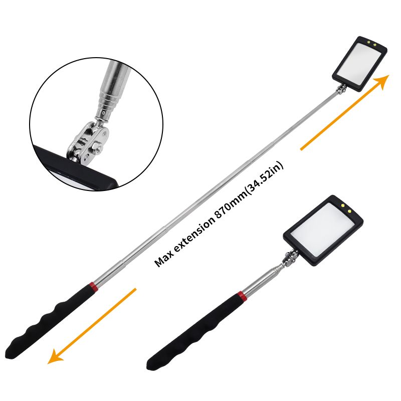 2. It also features a 360-degree rotary ball joint for extra viewing capabilities, allowing inspection mirror to swivel freely, yet holding a desired position.