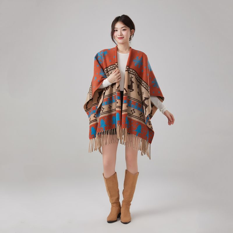 Autumn And Winter Ethnic Style Warm Shawl Orange 60to80cm