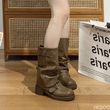 Autumn and Winter Fashion Retro Brown Western Cowboy Boots Women's Boots 2025 New Look Slim Thick and Stacked Short Boots